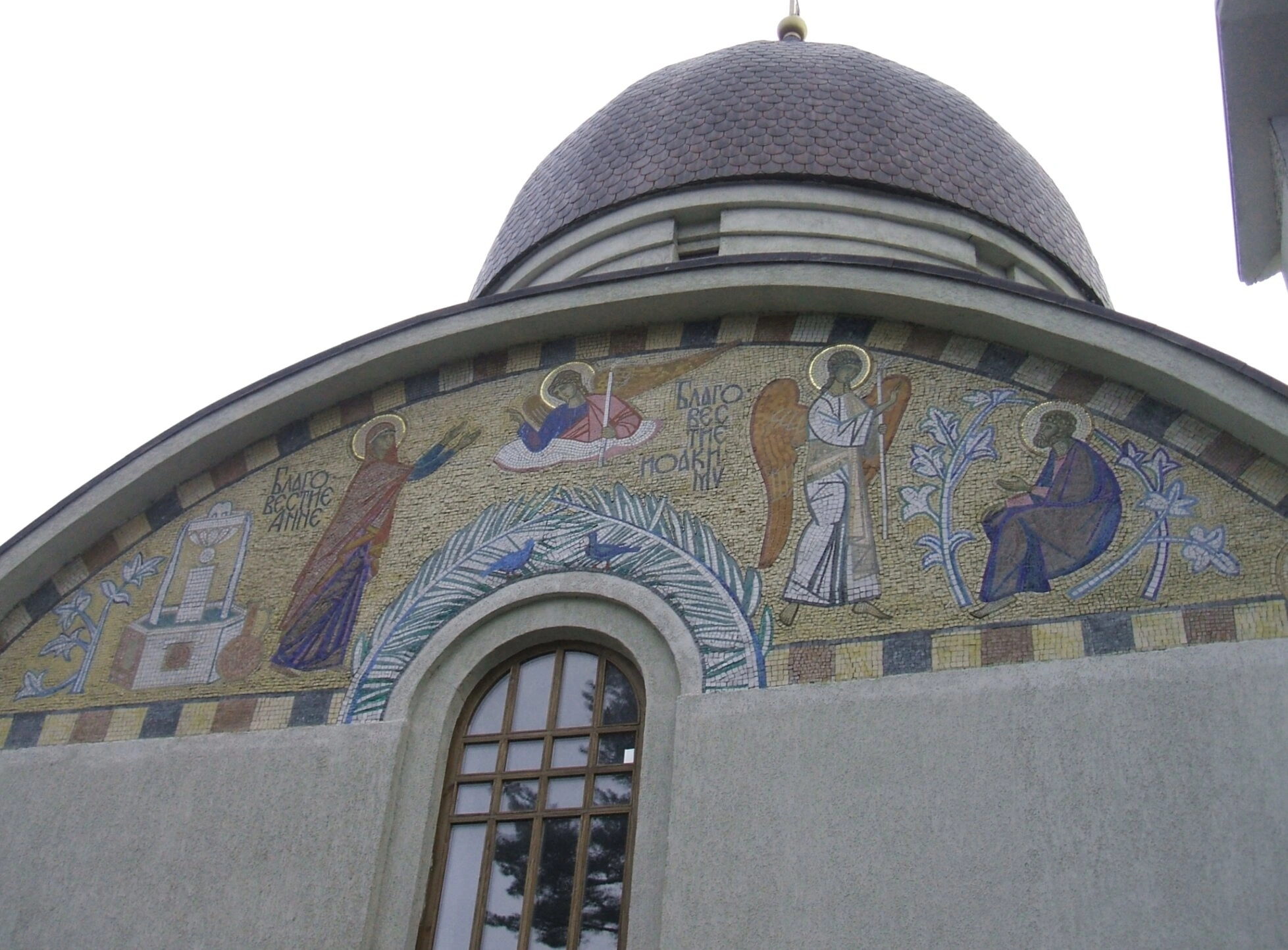 - Мозаичный крест на фасаде Храма Рождества Пресвятой Богородицы