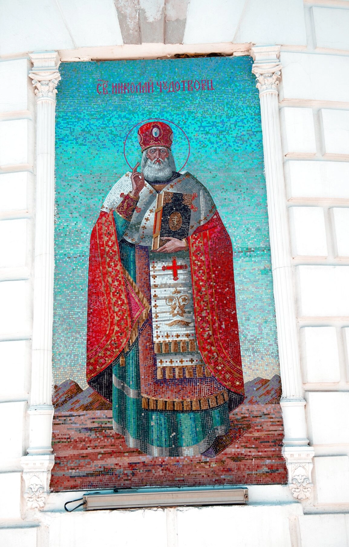 - Мозаичный образ Святителя Николая Чудотворца на Никольском соборе в Серпухове