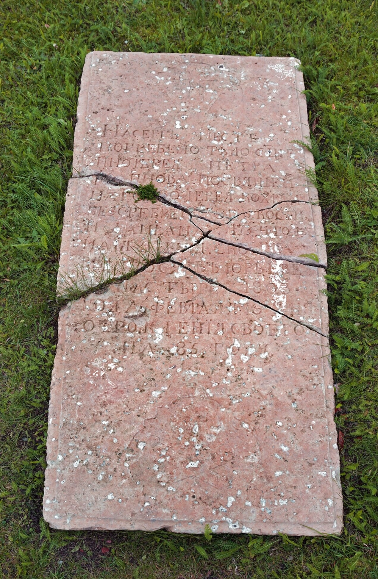 - Надгробная плита с старославянской вязью в Свято-Юрьевом монастыре