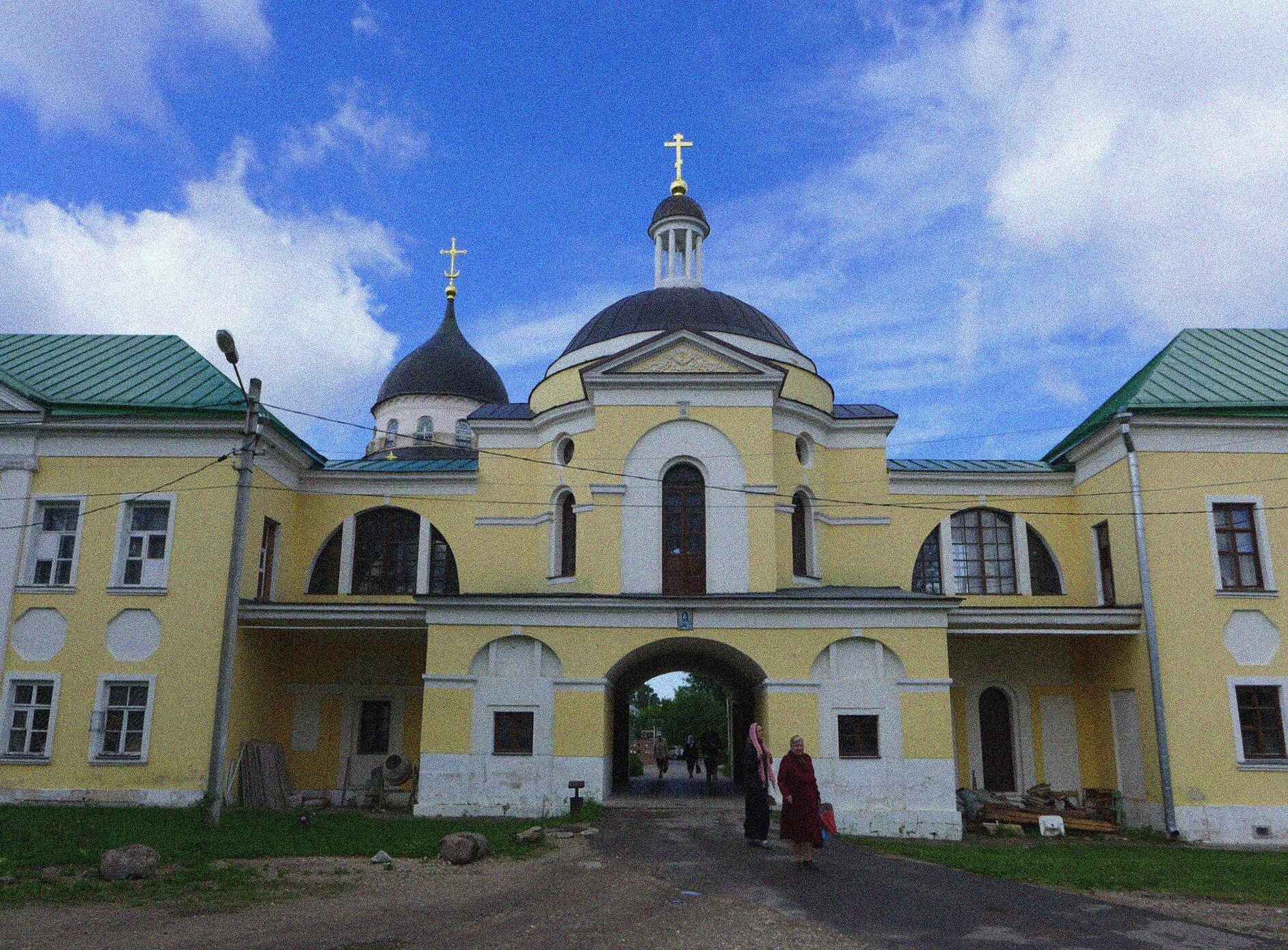 Венчают храм два изящных купола, увенчанных православными крестами, что символизирует двойное посвящение – Спасителю и Пресвятой Богородице. Подобное архитектурное решение было традиционным для надвратных храмов русских монастырей, сочетающих функциональность и духовное значение.
