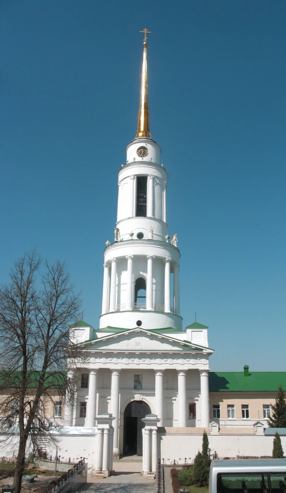 Колокольня была возведена в первой половине XIX века и представляет собой яркий образец русского классицизма в церковном зодчестве. В её основании, над святыми вратами, располагается храм, освящённый во имя святителя Николая, архиепископа Мир Ликийских, одного из самых почитаемых на Руси святых.