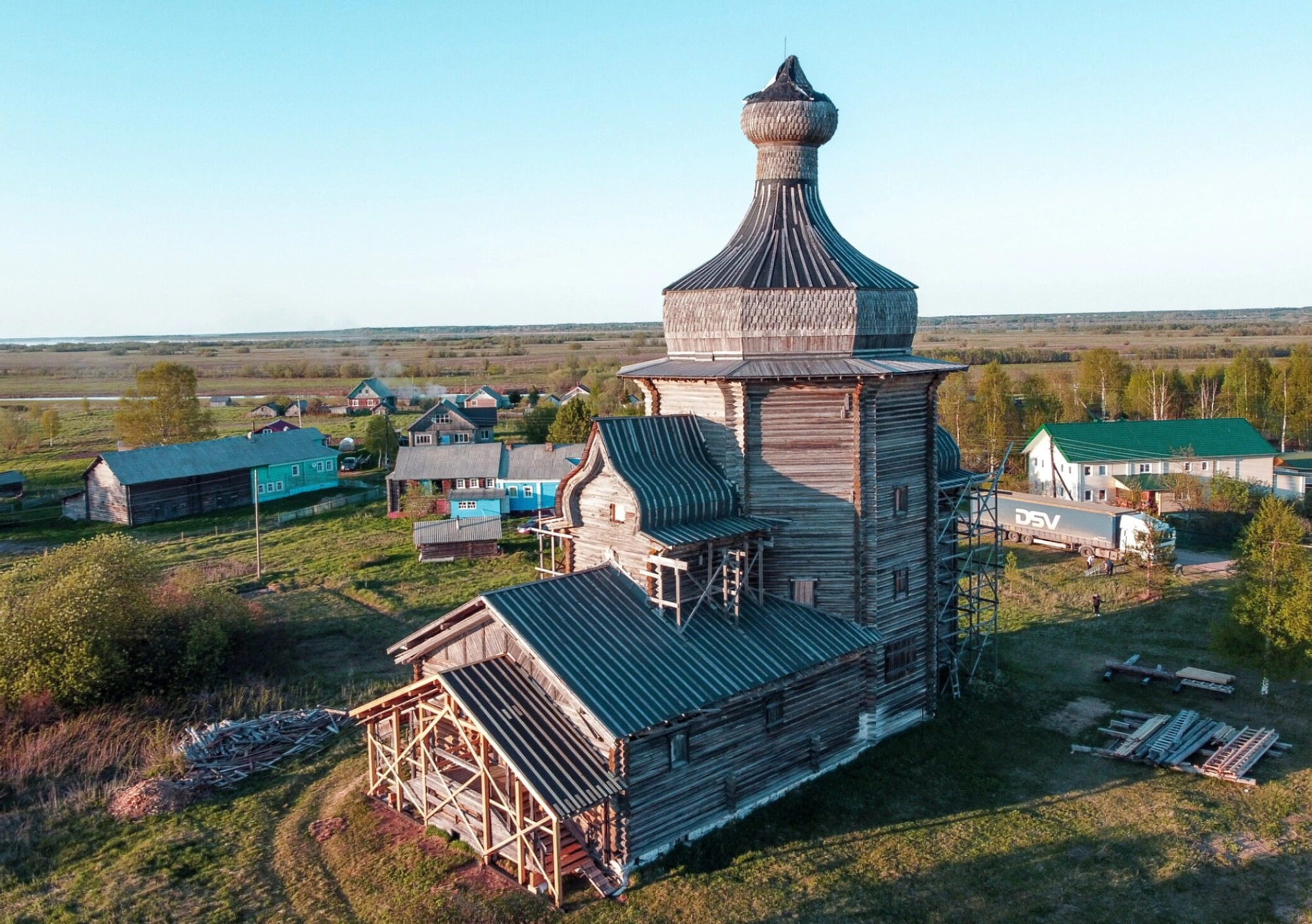 Колокольня с храмом была возведена в XVII столетии и представляет собой выдающийся образец северного церковного строительства. Архитектурное решение сооружения демонстрирует традиционные для русского Севера приёмы обработки дерева и компоновки объёмов. Высота конструкции и гармоничные пропорции свидетельствуют о высоком мастерстве безымянных зодчих, создавших этот духовный центр поморского селения.