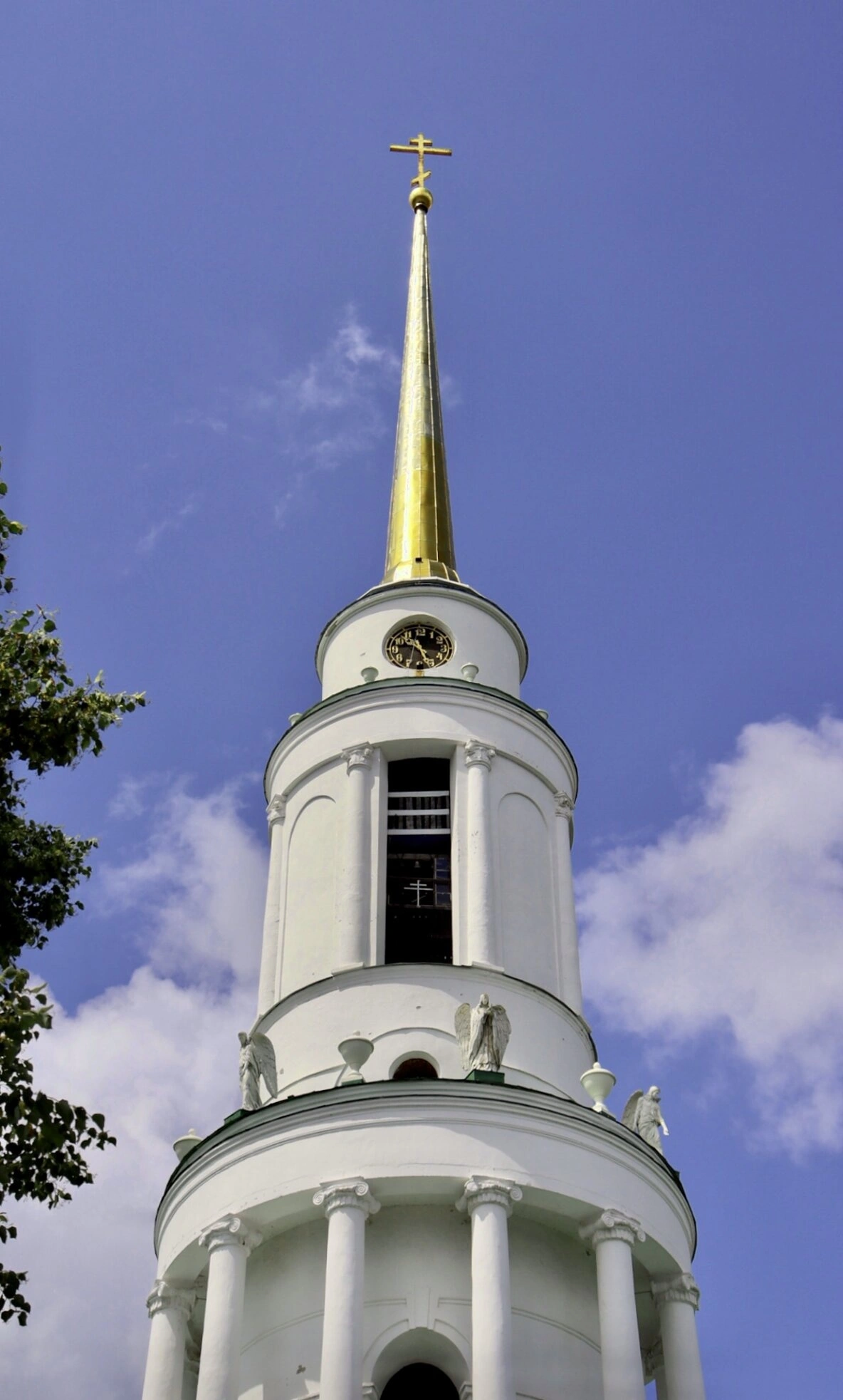 Колокольня исполнена в классическом стиле и состоит из нескольких ярусов. Нижний ярус, прорезанный высокой аркой сводчатых ворот, украшен пилястрами и декоративными элементами. Последующие ярусы, уменьшающиеся в размерах, декорированы арочными проёмами и колоннами, что придаёт всей постройке лёгкость и гармоничность. Венчает это духовное сооружение золочёный шпиль, увенчанный сияющим православным крестом, символизирующим победу жизни над смертью.