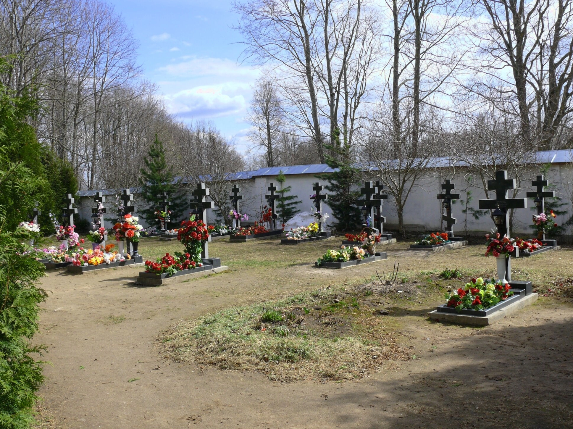 На представленной фотографии запечатлён монастырский некрополь на территории Спасо-Преображенского Варлаамо-Хутынского мужского монастыря, что расположен в Новгородской области, неподалёку от Великого Новгорода. Святая обитель, основанная преподобным Варлаамом Хутынским в XII веке, на протяжении многих столетий является одним из главных духовных центров православной Руси.