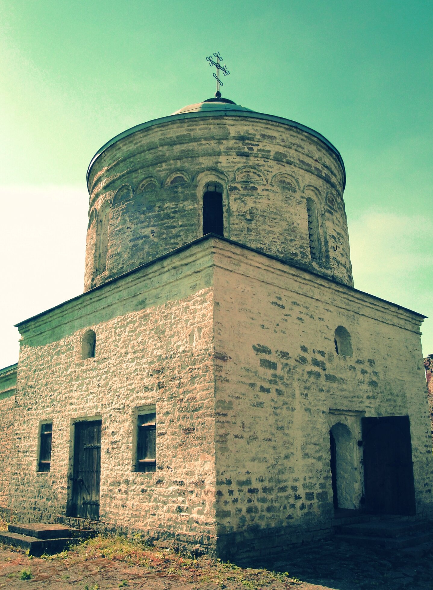 На представленной фотографии запечатлена древняя Никольская церковь, расположенная на территории Ивангородской крепости. Храм, освящённый во имя святителя Николая Чудотворца, является одним из старейших православных сооружений на северо-западе России. Его строительство относят к XVI столетию.
