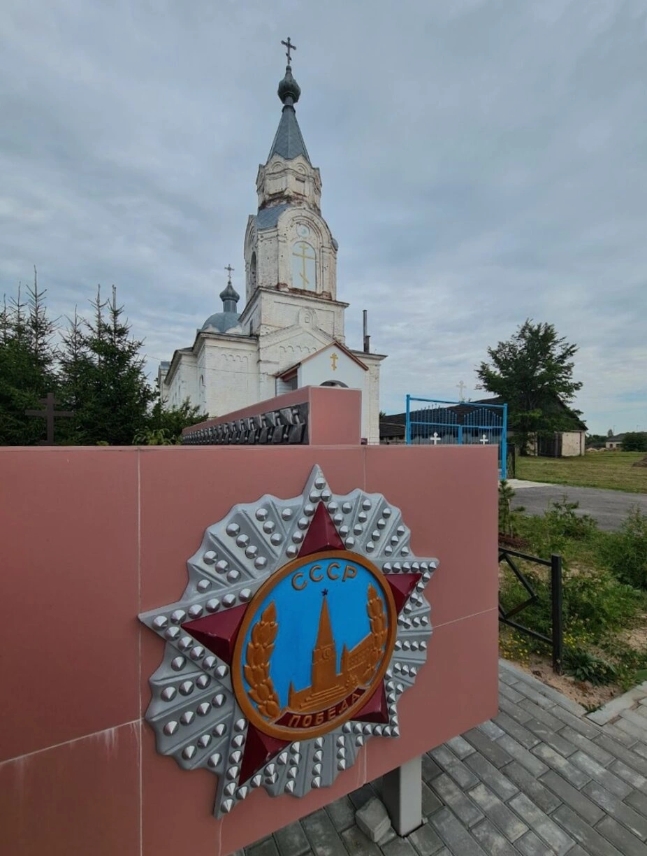 Никольская церковь в Кривополянье и мемориал с орденом «Победа»