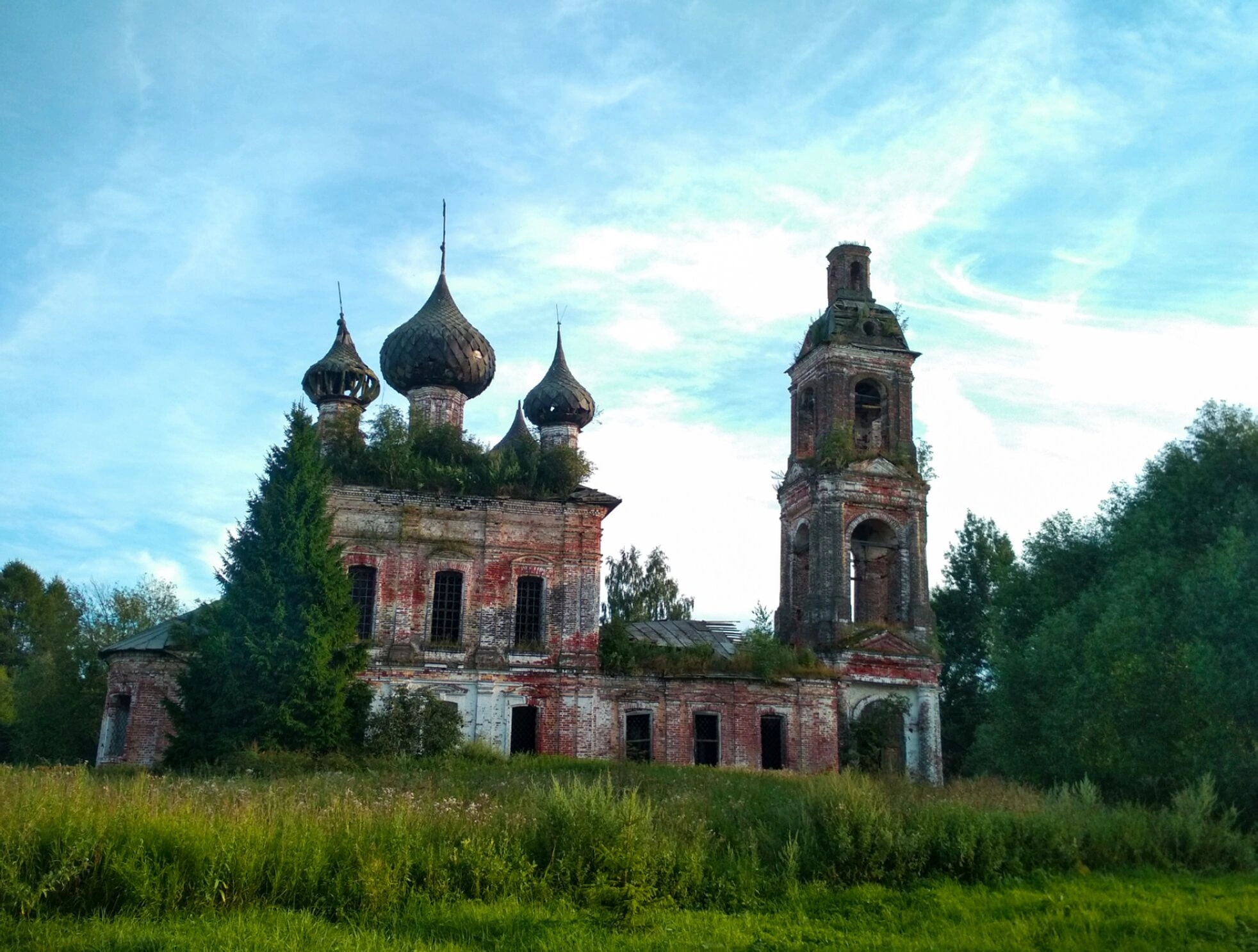На представленной фотографии запечатлена Никольская церковь, расположенная в селе Никольское Некрасовского района Ярославской области. Этот православный храм, освящённый во имя святителя Николая Чудотворца, представляет собой значительный памятник церковной архитектуры и культурного наследия региона.