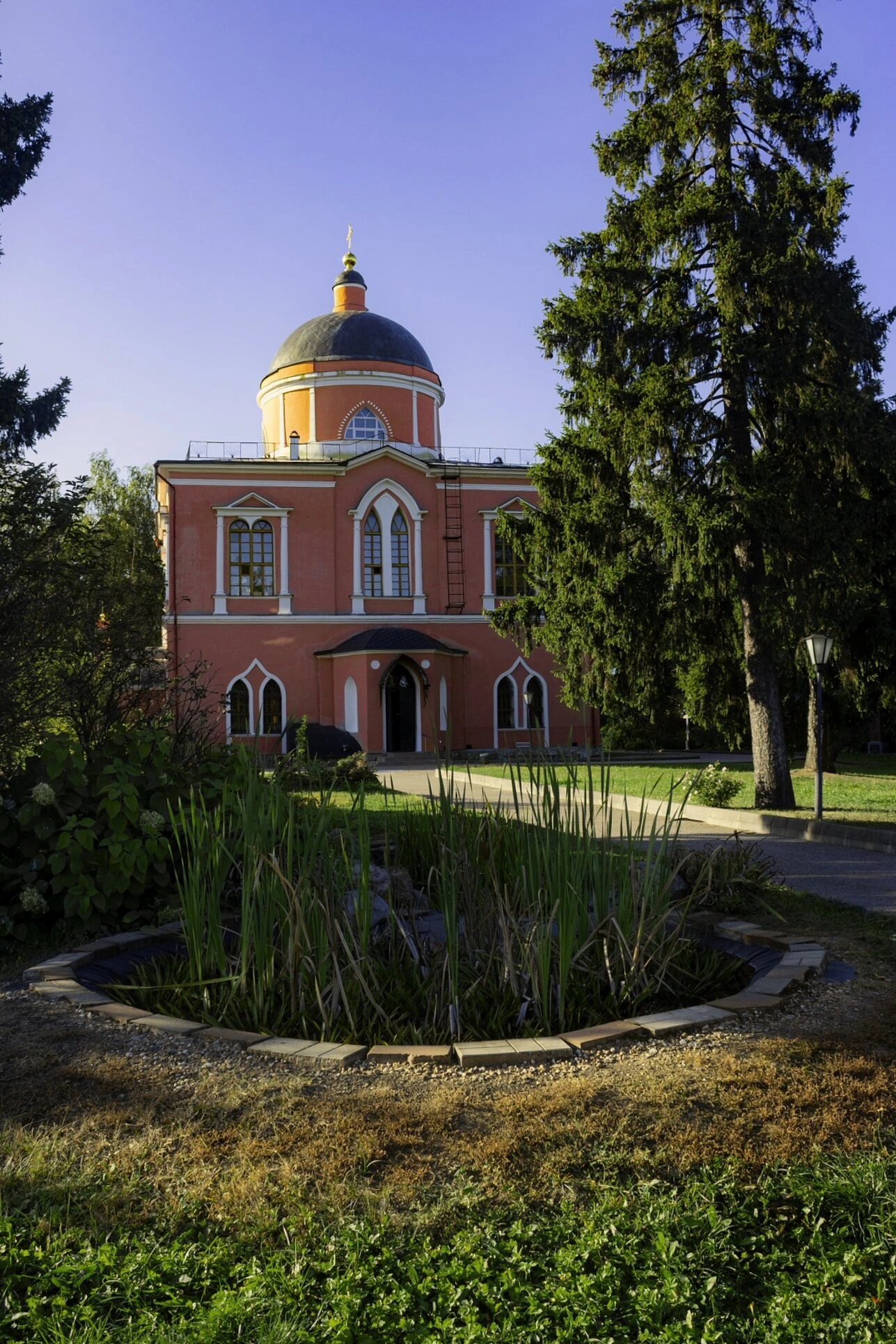 Особого внимания заслуживает колокольня, составляющая единый архитектурный ансамбль с основным зданием храма. Её ярусная конструкция и завершение в виде шатра характерны для церковной архитектуры Центральной России. На территории вокруг храма visible деревья и ухоженная территория, что создает атмосферу духовного уединения и покоя.