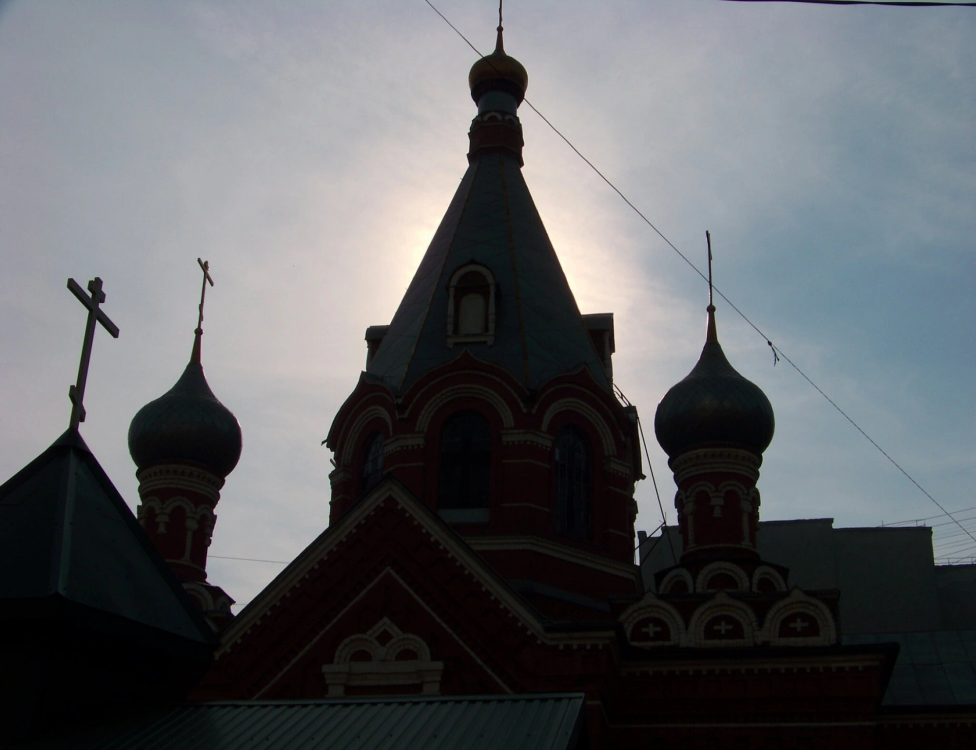 - Никольский храм в Липецке - архитектурный силуэт против солнца