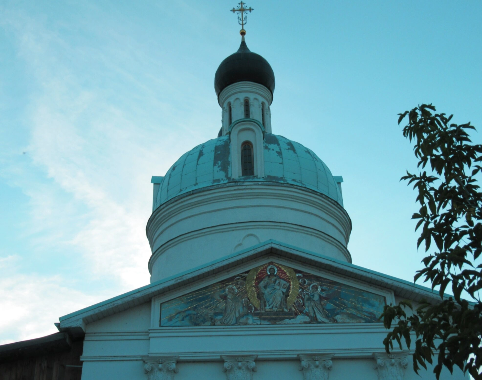 - Никольский храм в Лукьяново: купол и мозаичное панно