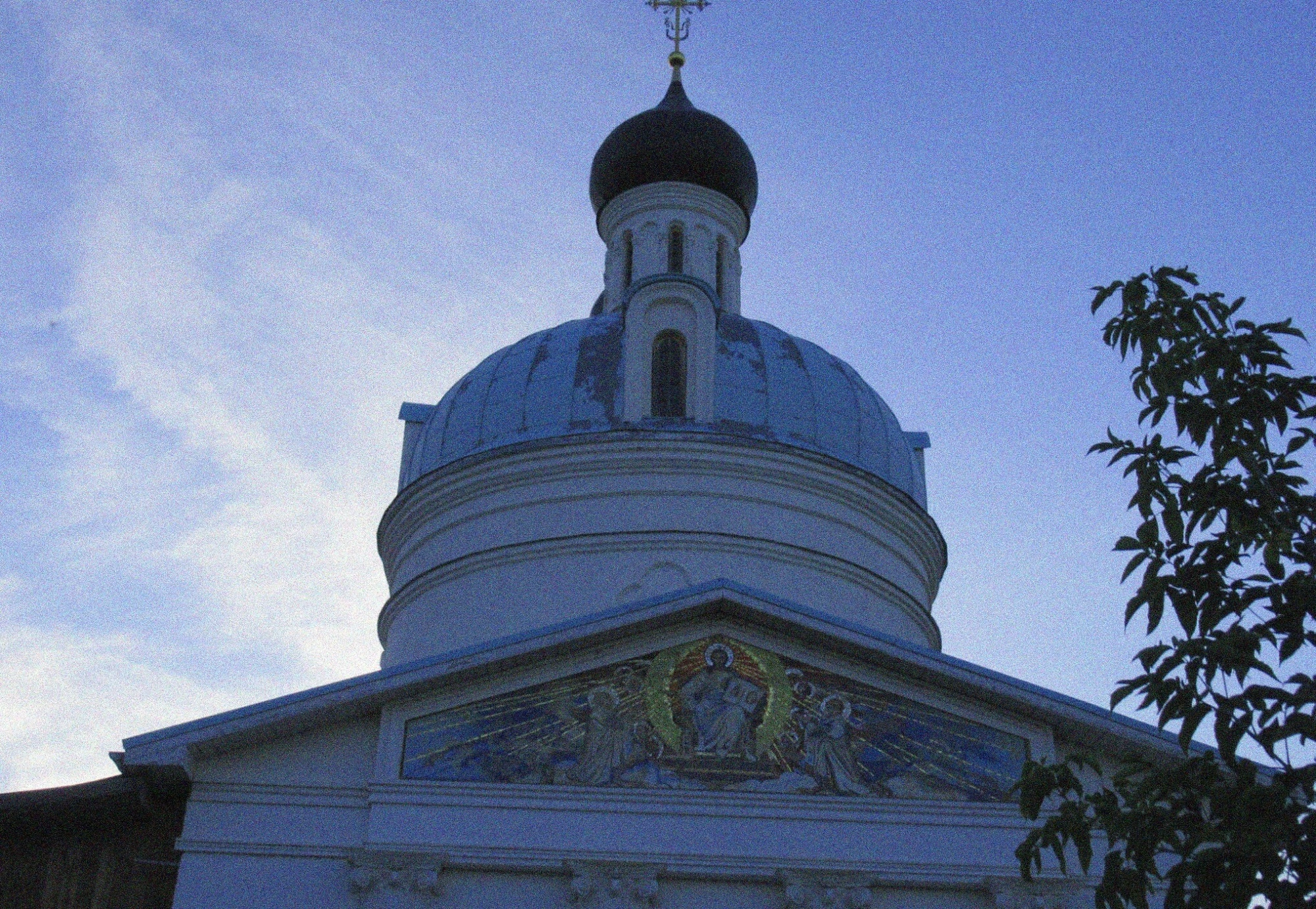 - Никольский храм в селе Лукьяново: купол и мозаичный образ