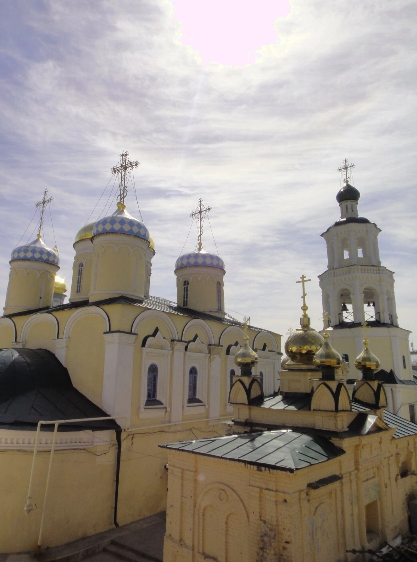 На представленной фотографии запечатлён величественный Никольский кафедральный собор, являющийся одной из архитектурных доминант и духовных центров города Казани. Храм располагается по указанным координатам в непосредственной близости от Казанского Богородицкого мужского монастыря, образуя единый ансамбль православного зодчества.
