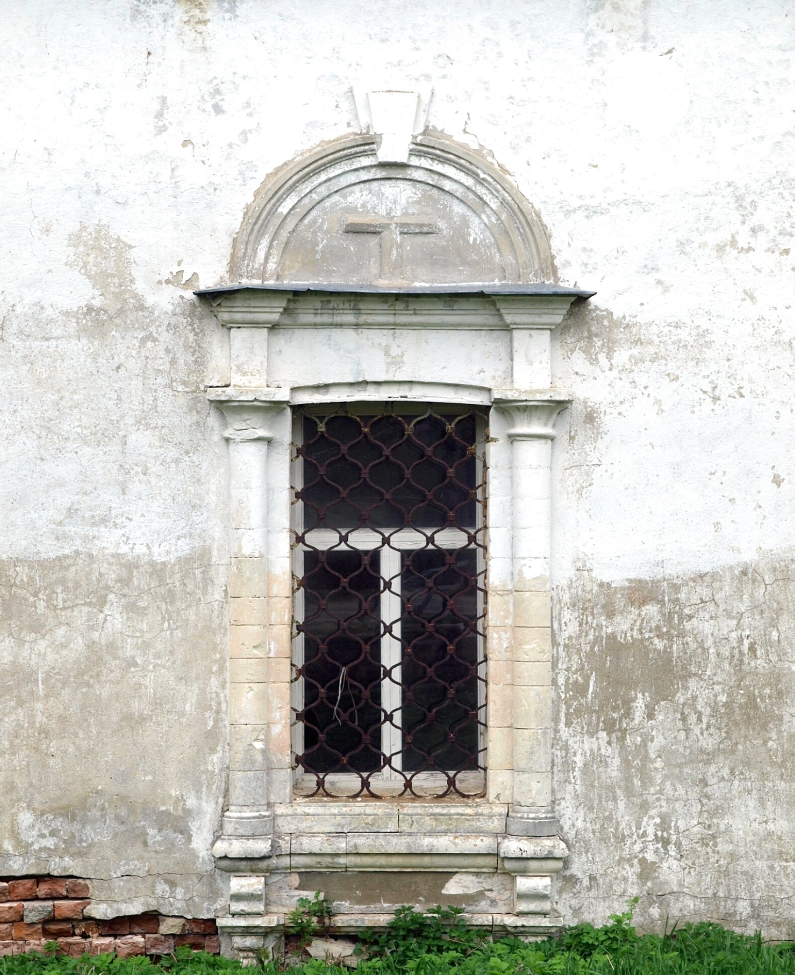 - Окно с кованой решеткой Казанской церкви в Брыньково