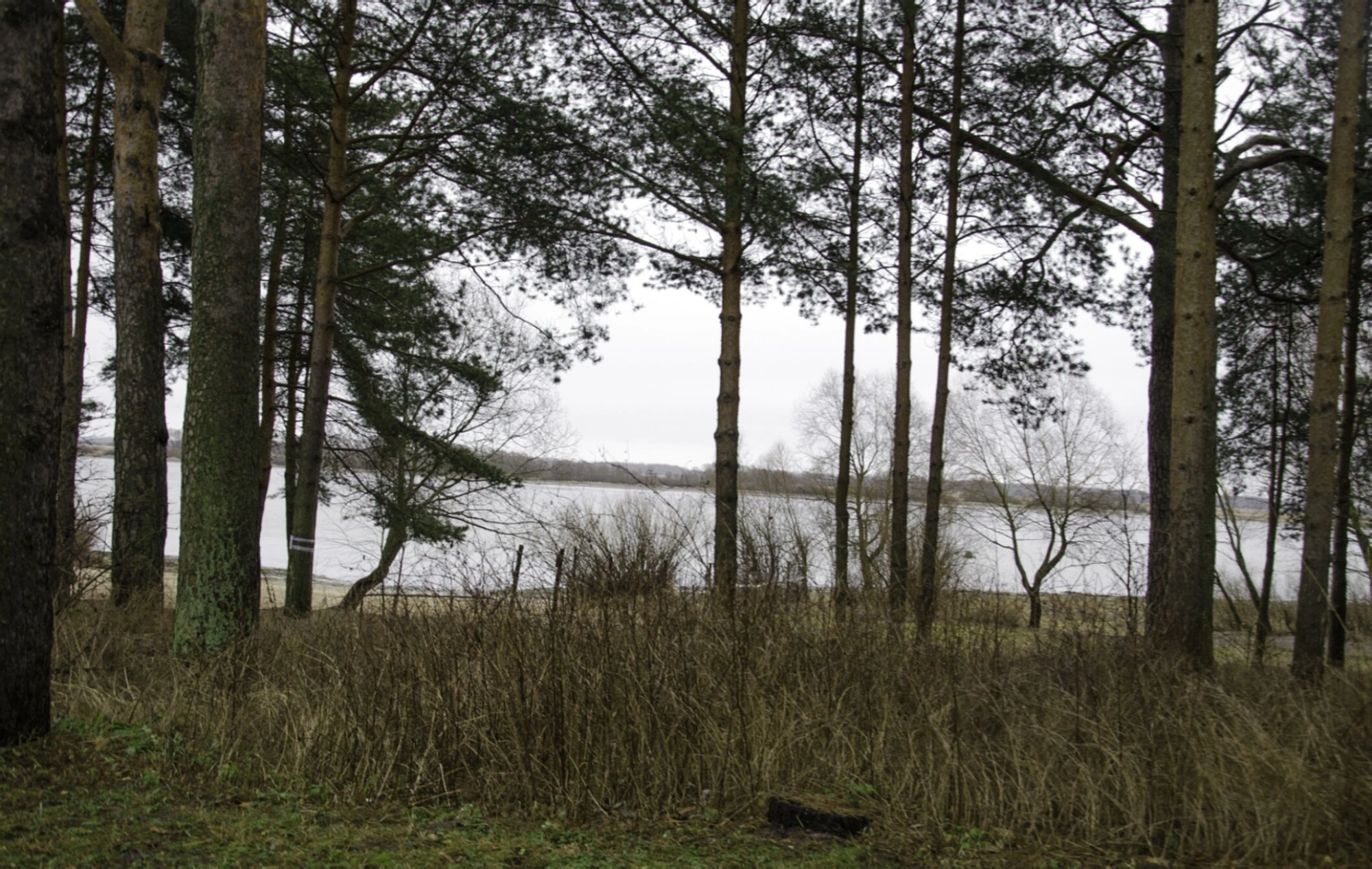 На представленной фотографии запечатлён благодатный зимний пейзаж в окрестностях одной из древнейших православных обителей Руси – Свято-Юрьева монастыря, что под Великим Новгородом. Взору открывается вид на замёрзшие воды озера Островито, обрамлённого сосновым лесом. Снежный покров укутывает землю, придавая всей округе благолепный и умиротворённый вид.