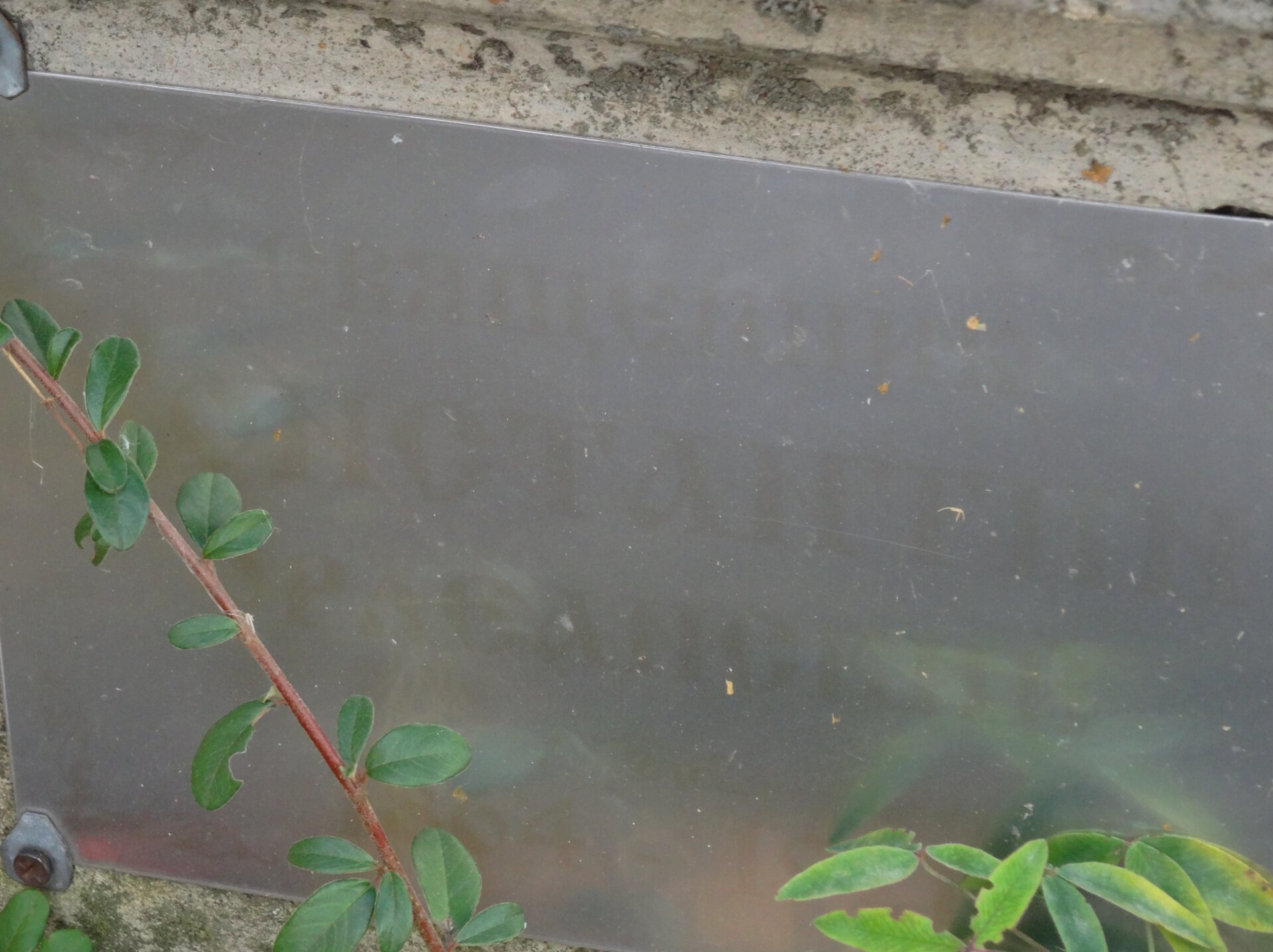 Живая зелень растений, мягко обрамляющая края таблички, символизирует благодать Божию и жизненную силу, которую дарует вера. Этот природный элемент создаёт удивительный симбиоз рукотворного памятника и творения Господня, подчёркивая неразрывную связь между духовным подвигом человека и божественным миром.