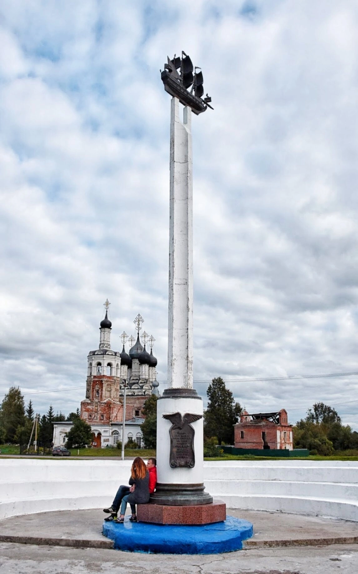 Памятник кораблю «Орёл» и Троицкий храм в селе Дединово
