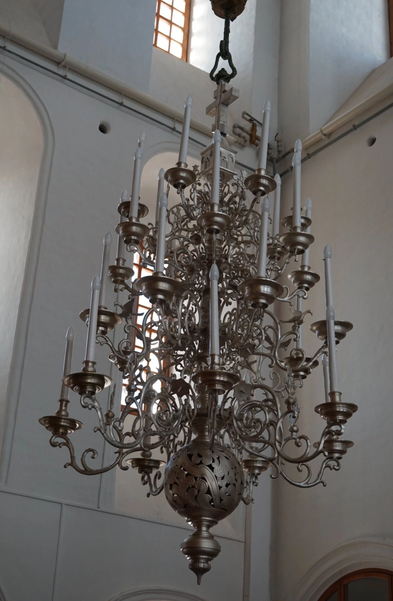 Паникадило отличается сложным витиеватым узором с растительными мотивами, характерными для православной храмовой утвари. Многочисленные рожки, стилизованные под подсвечники, символизируют свет Христовой веры, озаряющий всех присутствующих в храме. В нижней части композиции расположен крупный сферический элемент с ажурной резьбой, придающий всей конструкции особую торжественность.
