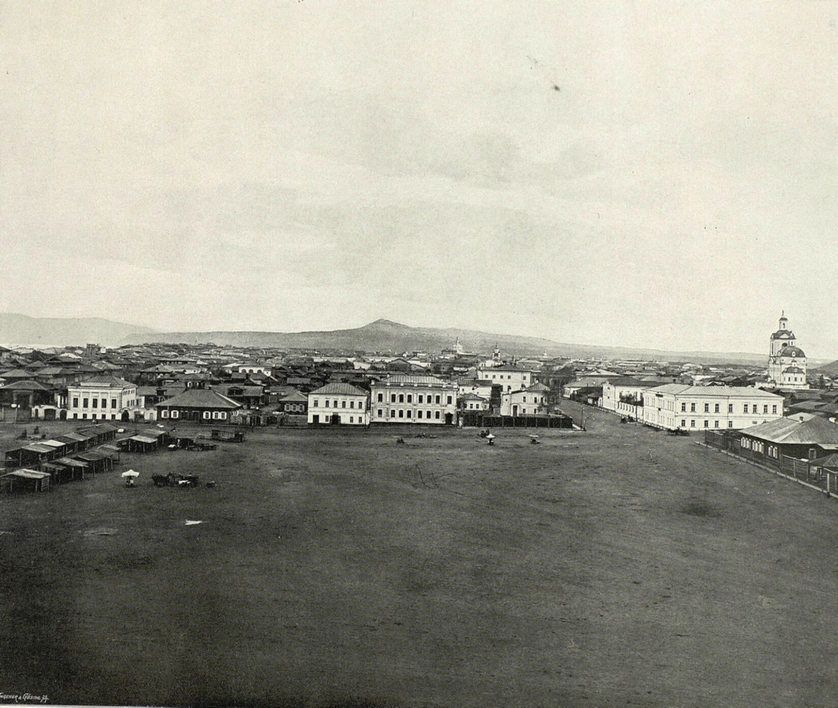 Над всем городским пейзажем царит белосневный Благовещенский собор с его устремлёнными в небо куполами и колокольней. Храм, построенный в русско-византийском стиле, был одним из крупнейших в Сибири и мог вместить до пяти тысяч молящихся. Его монументальный силуэт, увенчанный золотыми главками, служил духовным ориентиром для горожан и путешественников, прибывающих в город по Великому Сибирскому тракту.