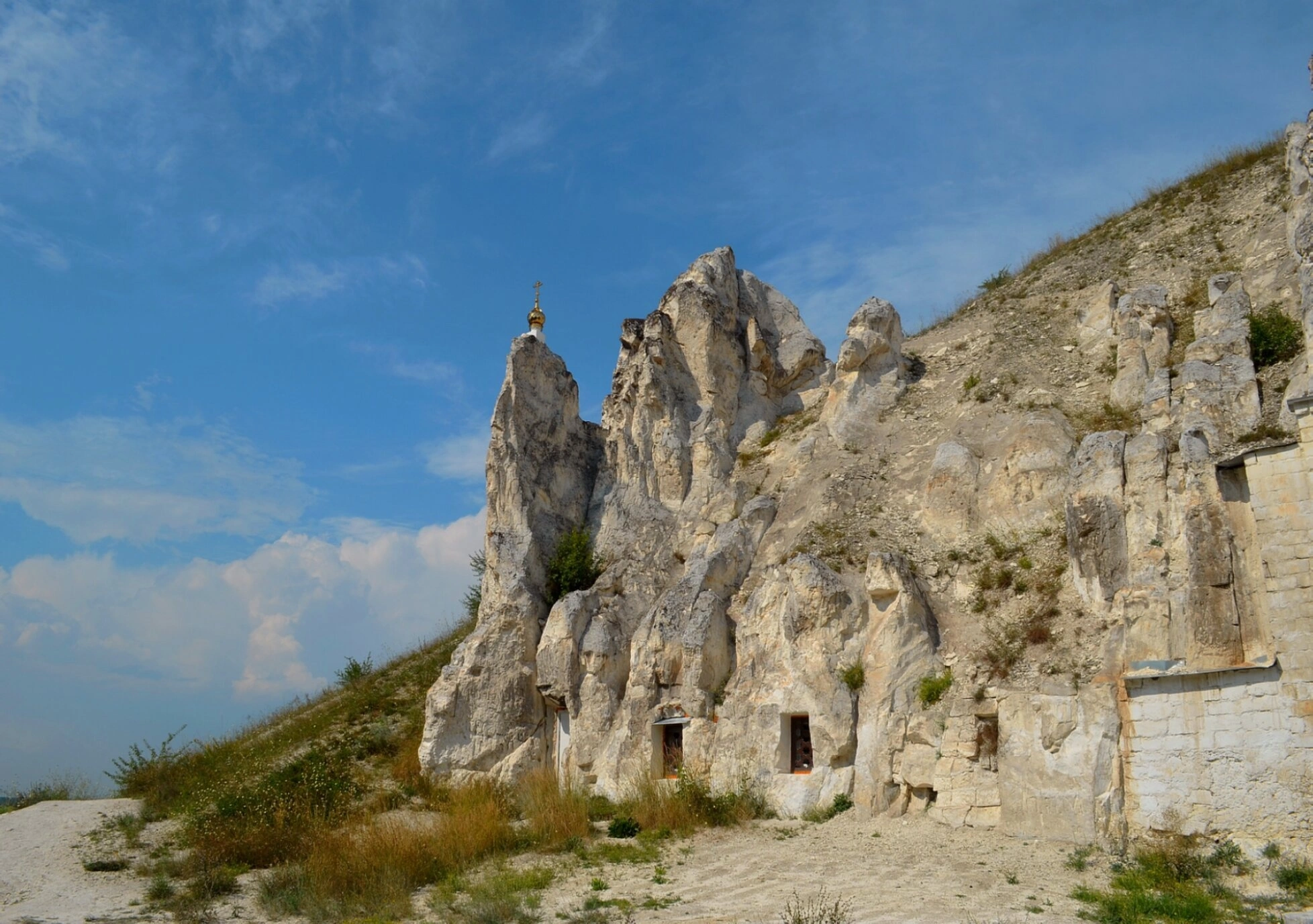 Внутри меловой скалы скрывается целый духовный комплекс: узкие переходы, кельи отшельников и сам храм с высеченными в мелу иконостасом и алтарём. Это место дышит древностью и молитвенным подвигом многих поколений иноков, искавших здесь уединения для служения Господу. Причудливые меловые столбы-дивы, созданные самой природой, служат нерукотворными стенами и богохранимой твердыней для этой святыни.