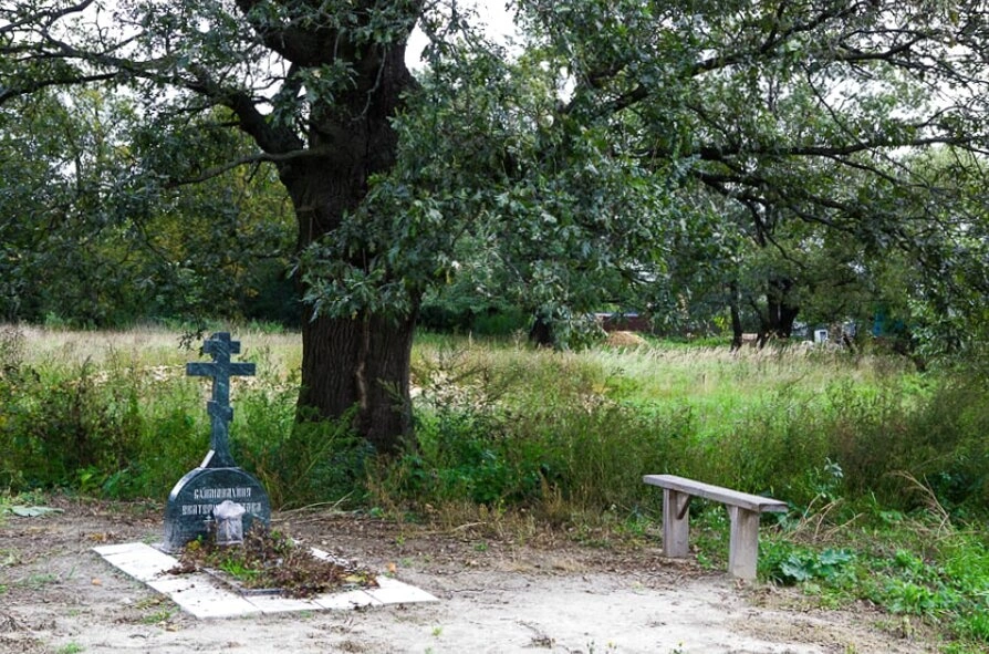 Территория погоста ухожена и содержится в порядке, что свидетельствует о заботе прихожан о месте вечного упокоения своих близких. Фотография передаёт атмосферу тишины и молитвенного настроения, характерную для православных некрополей. Каждый элемент этого священного пространства — от могильного креста до тенистого дерева — напоминает о бренности земной жизни и надежде на Царство Небесное.
