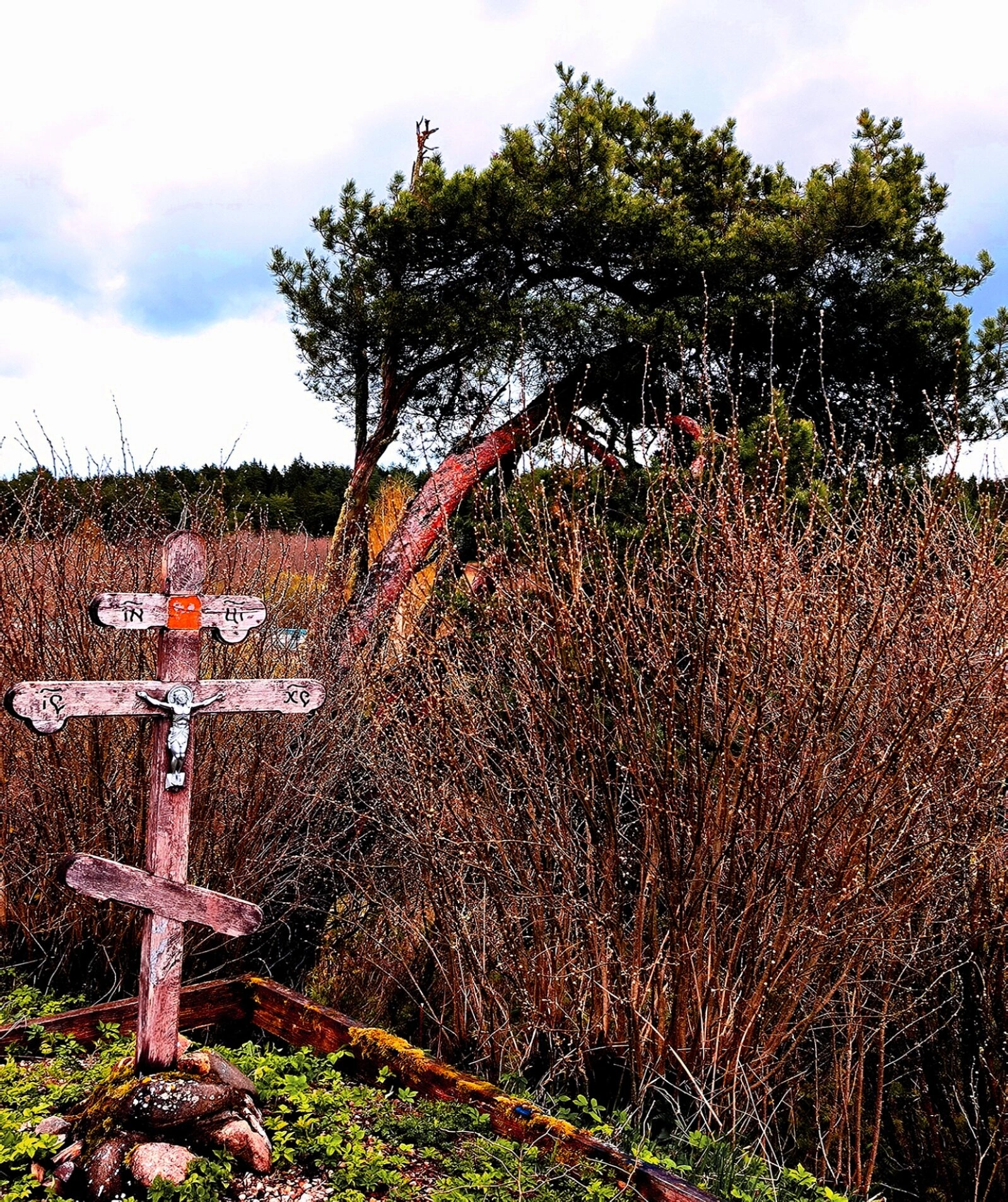 Крест на снимке, стоящий на фоне скромной северной природы, символизирует торжество веры над суетой мира, являясь зримым свидетельством благочестия и памяти предков. Подобные кресты часто воздвигаются на въезде в село, near святых источников или на местах, где ранее стоял храм. Он призывает путника остановиться и вознести краткую молитву, испрашивая благословения Божия на дальнейший путь.