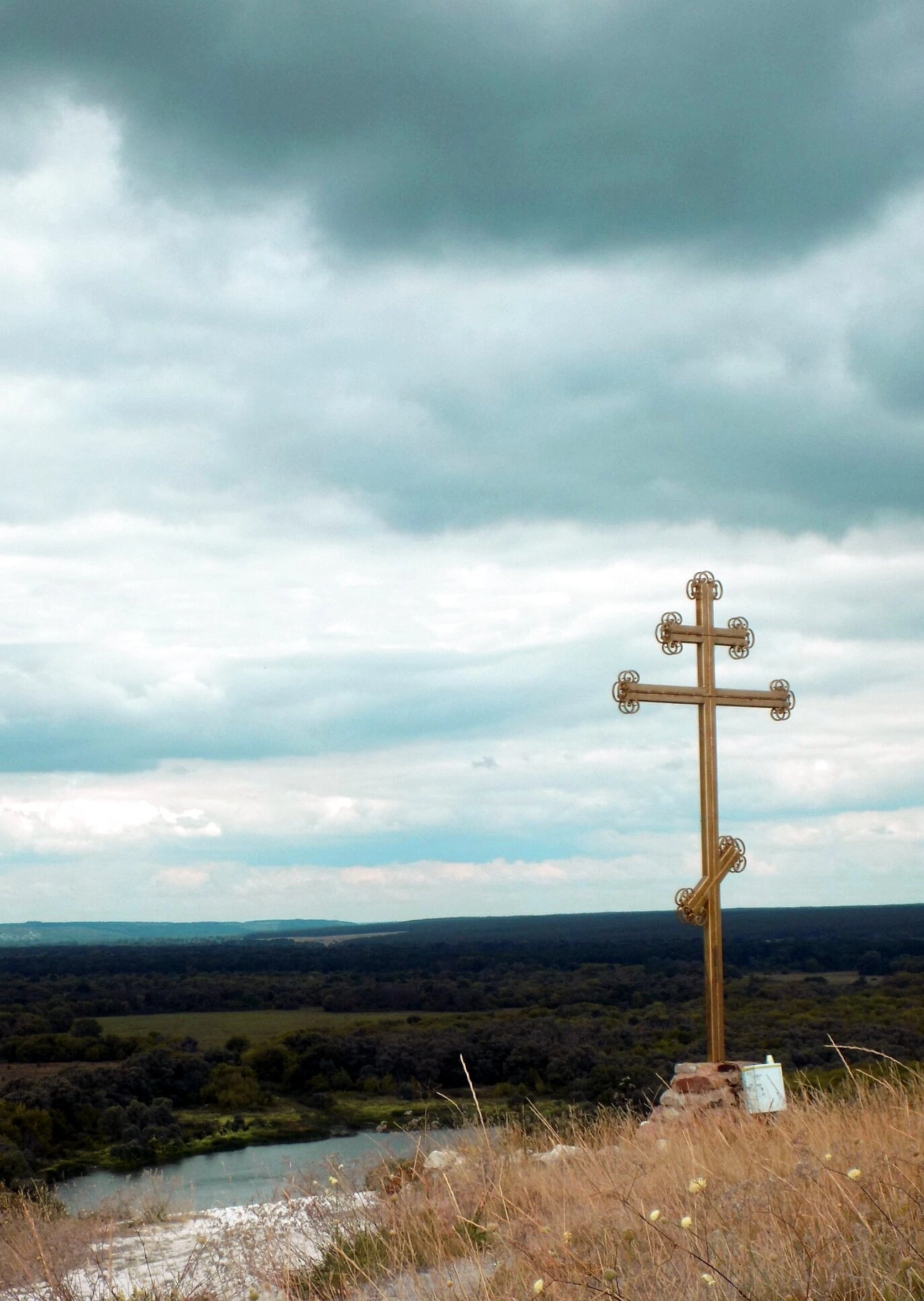 Небо в час съёмки покрыто облаками, что придаёт изображению особую, строгую и возвышенную атмосферу, напоминающую о бренности мира и вечности Божественного замысла. Установка таких поклонных крестов на возвышенных местах является древней православной традицией, освящающей землю и указывающей путь к спасению всякому взирающему на него с верой и упованием.