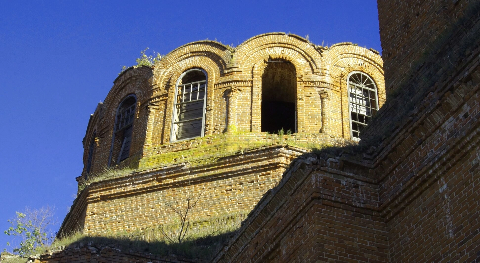 На фотографии запечатлена Покровская церковь в селе Красная Река Старомайнского района Ульяновской области. Этот величественный каменный храм, освящённый в честь Покрова Пресвятой Богородицы, был возведён в 1912 году на средства прихожан. Архитектурный облик храма выполнен в русско-византийском стиле, что придаёт ему особую монументальность и духовную значимость.