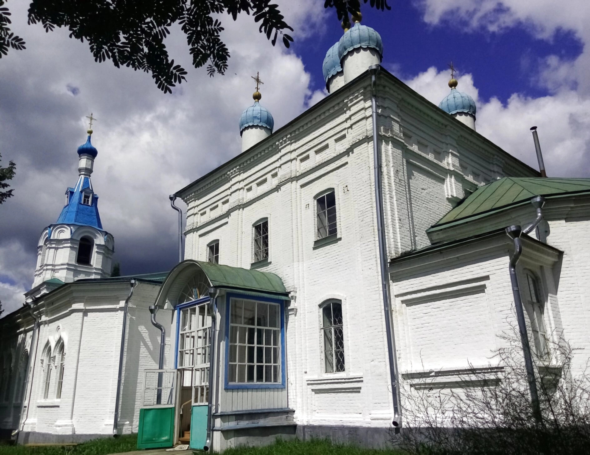 Величественное белокаменное здание является ярким образцом традиционного русского церковного зодчества. Его венчают несколько синих куполов, символизирующих небесную чистоту и устремлённость к Богу, которые увенчаны златоглавыми крестами. Слева от основного объёма расположена колокольня, также завершённая синим куполом и изящным шпилем.