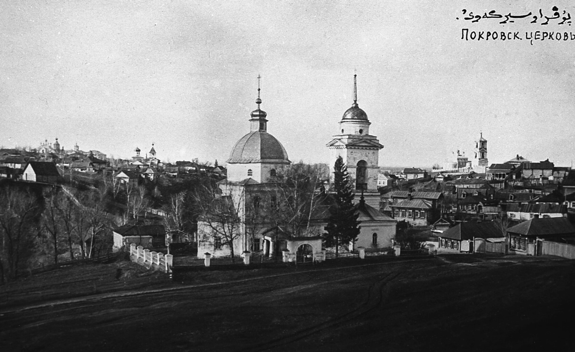 На представленной исторической фотографии запечатлена Покровская церковь — один из старейших православных храмов города Уфы. Чёрно-белое изображение передаёт атмосферу прошлого и позволяет рассмотреть архитектурные детали этого духовного центра.