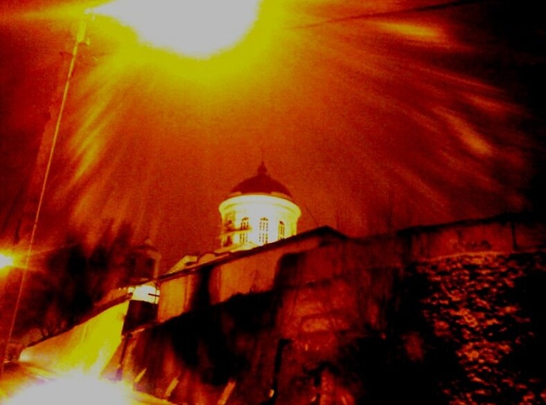 Данное изображение передаёт величие и благодатную красоту православной церкви, которая в ночные часы предстаёт перед верующими и гостями города в совершенно ином, созерцательном виде.