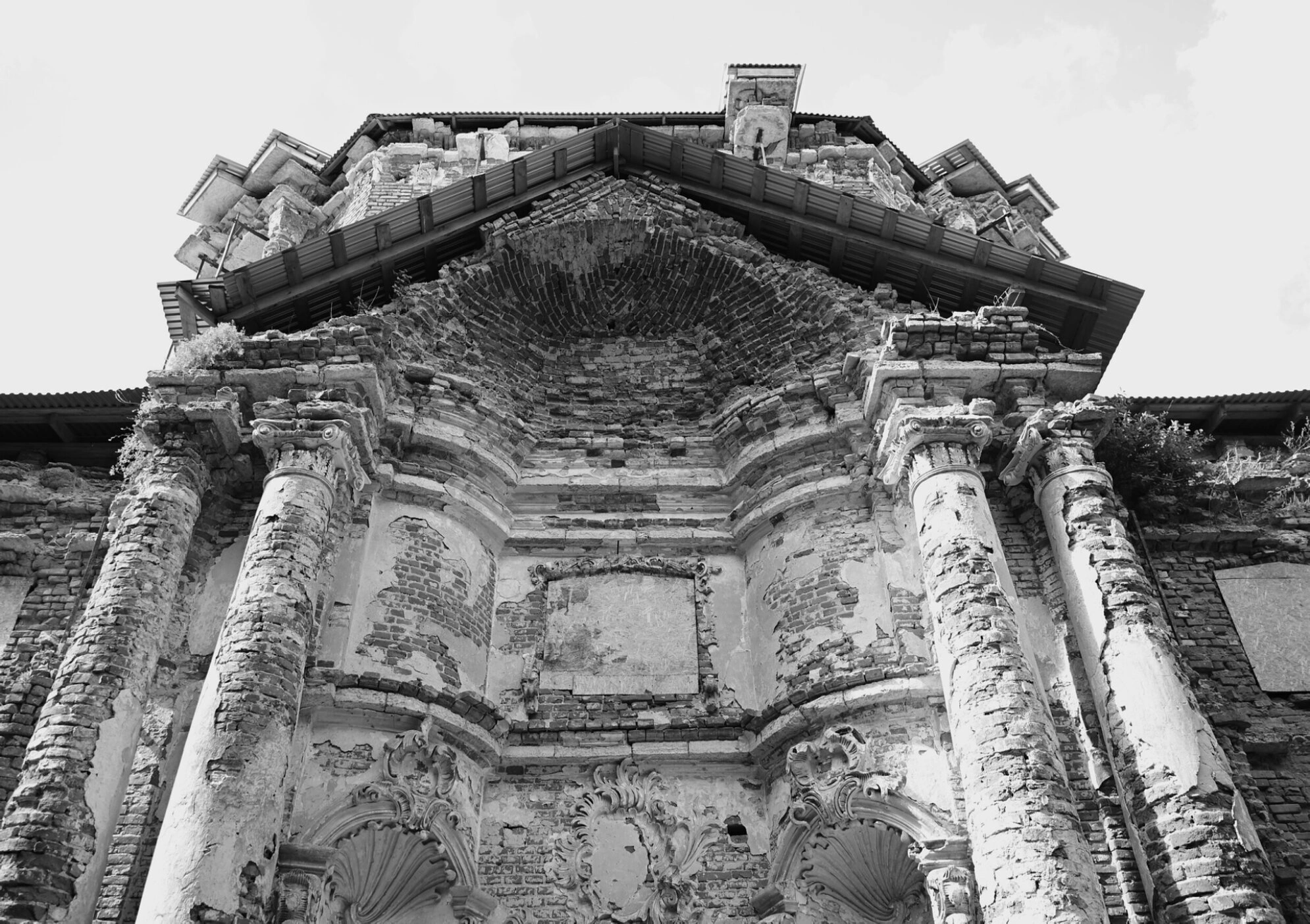 На фотографии запечатлена Покровская церковь в селе Заречный Репец Липецкой области — уникальный памятник православной архитектуры, ныне пребывающий в повреждённом состоянии. Храм был возведён в 1767 году на средства помещика Иосифа Ивановича Кожина, капитан-поручика лейб-гвардии Семеновского полка. Земли, на которых стоит церковь, имеют богатую историю: в XVII веке они принадлежали патриарху Филарету, отцу царя Михаила Романова, а позднее были подарены Петром I графу Фёдору Апраксину.