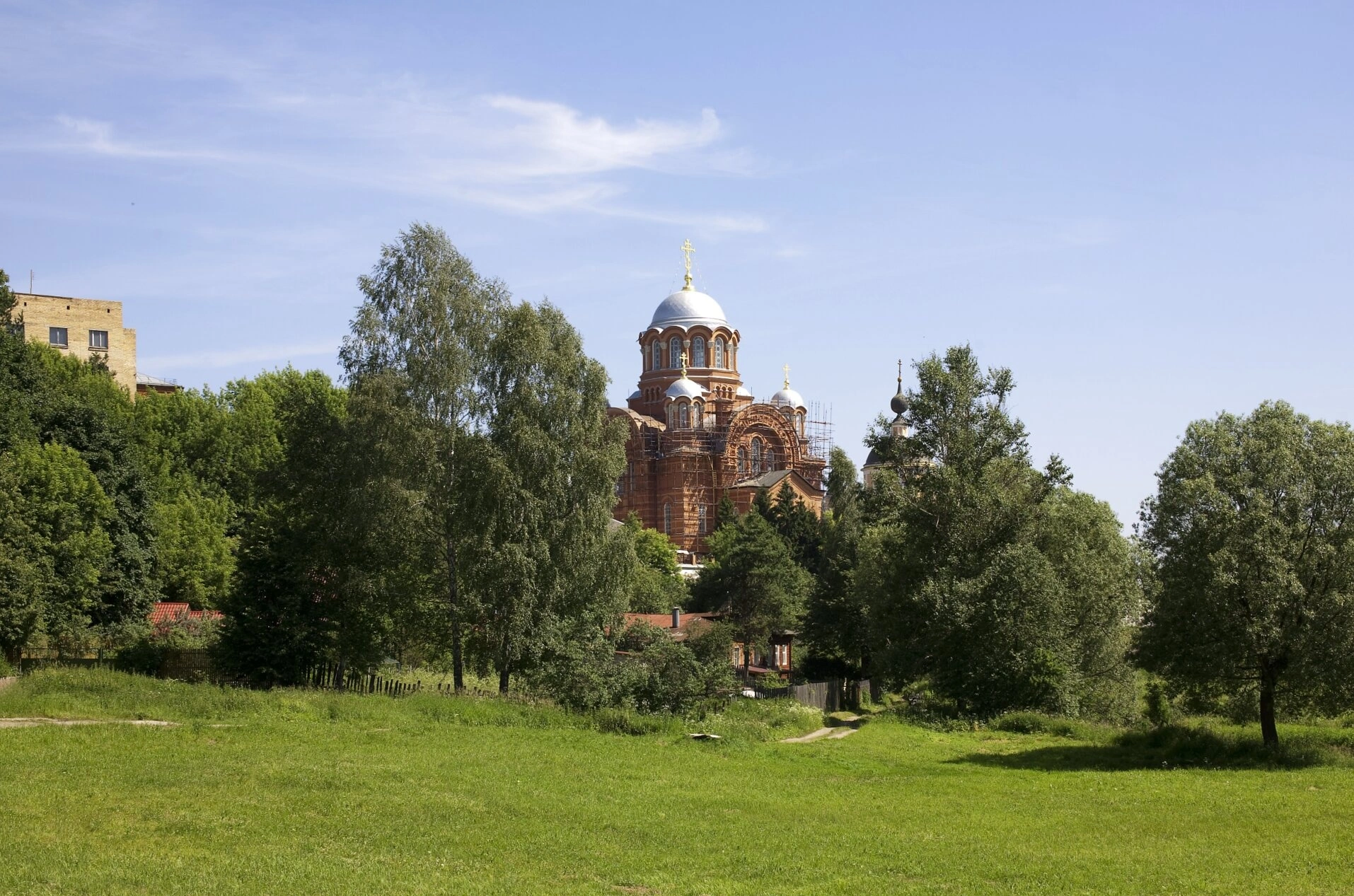 На представленной фотографии запечатлён вид на Покровский Хотьков ставропигиальный женский монастырь — одну из древнейших православных обителей Подмосковья, основанную в 1308 году. Монастырь имеет особое значение в истории Русской Православной Церкви, являясь местом первоначального упокоения святых родителей преподобного Сергия Радонежского, Кирилла и Марии, чьи мощи ныне почивают в Покровском соборе и являются главной святыней монастыря.