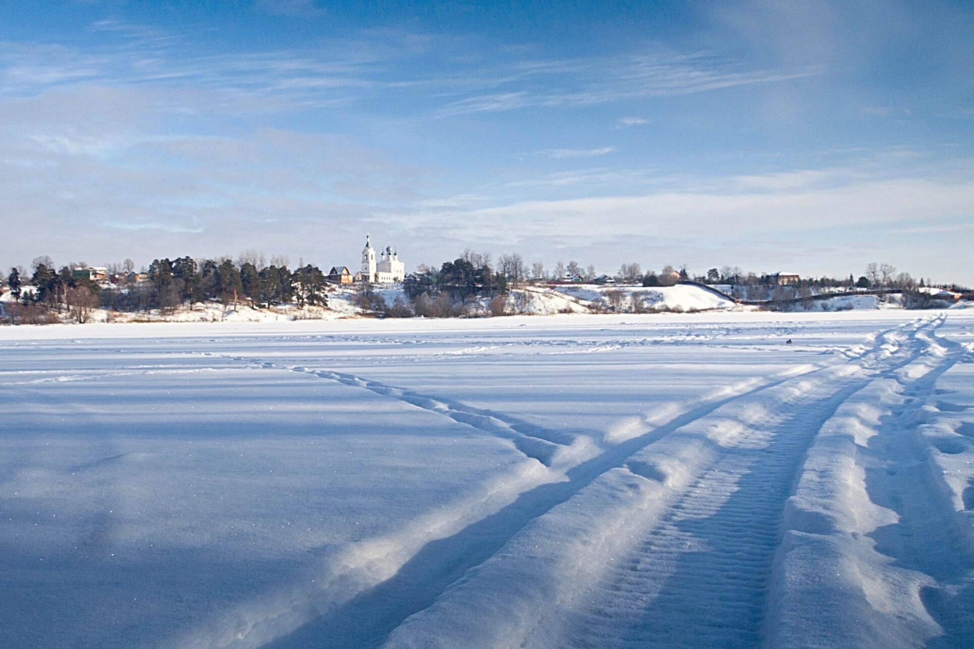 Представленная фотография запечатлела благолепный вид на Покровский храм в селе Жестылево Дмитровского района Московской области в зимнее время. Святой храм, освященный во имя Покрова Пресвятой Богородицы, возвышается на вершине заснеженного холма, являясь смысловым и духовным центром композиции.