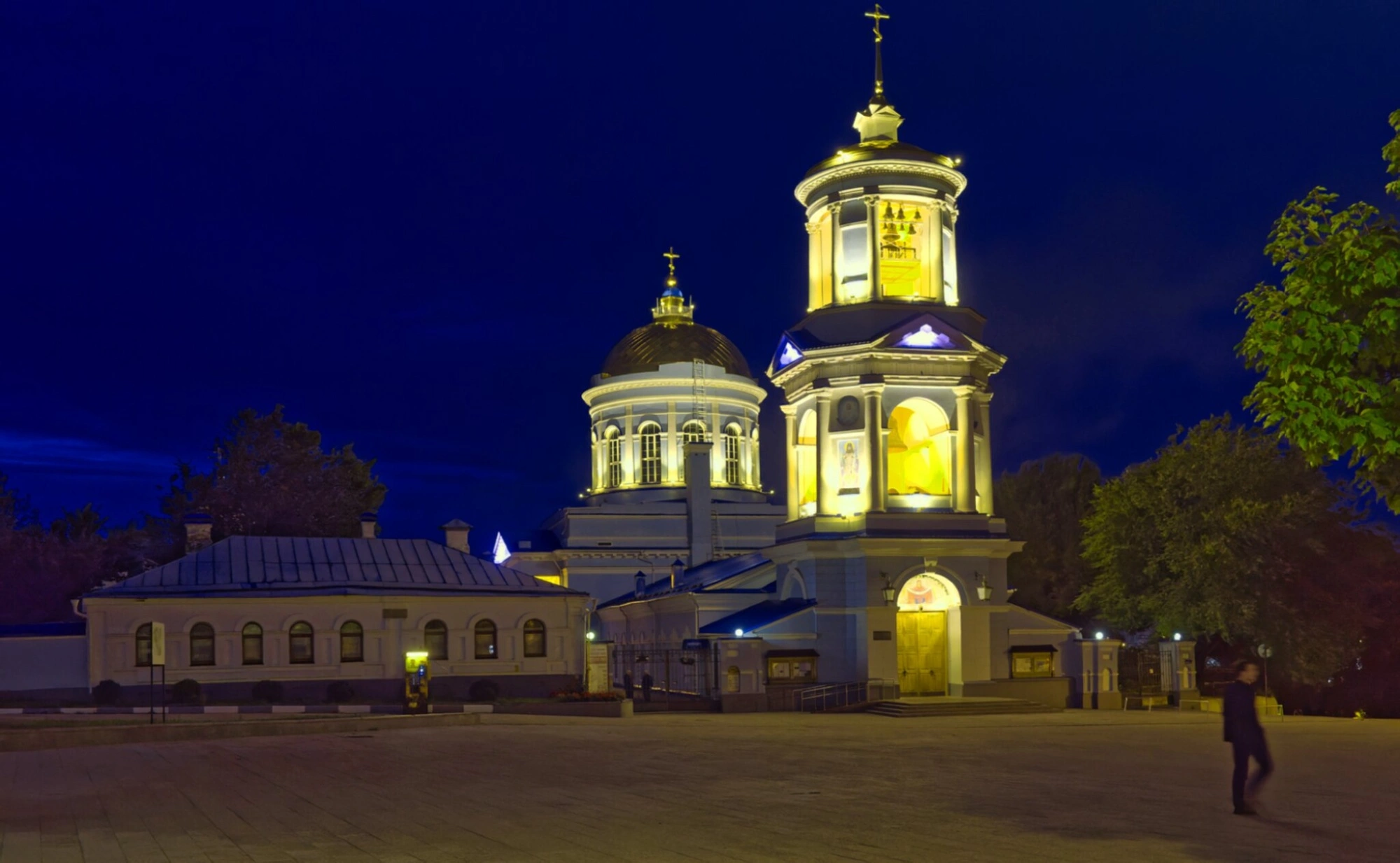 Ночная подсветка не только выделяет храм в городском пространстве, но и символизирует его как светоч веры, духовную твердыню, которая не угасает даже в самые тёмные времена. Сегодня под его сводами ежедневно совершаются богослужения, звучат молитвы, и каждый верующий может приложиться к его святыням, среди которых особо почитаемые иконы с частицами мощей святителя Митрофана Воронежского и преподобного Силуана Афонского.