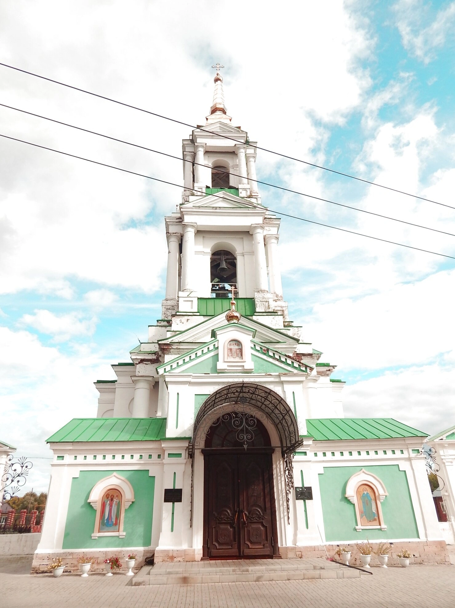 На фотографии запечатлён величественный Покровский собор, расположенный в историческом центре города Елабуги. Этот православный храм, освящённый в честь Покрова Пресвятой Богородицы, является одной из главных духовных доминант города и выдающимся памятником церковной архитектуры.