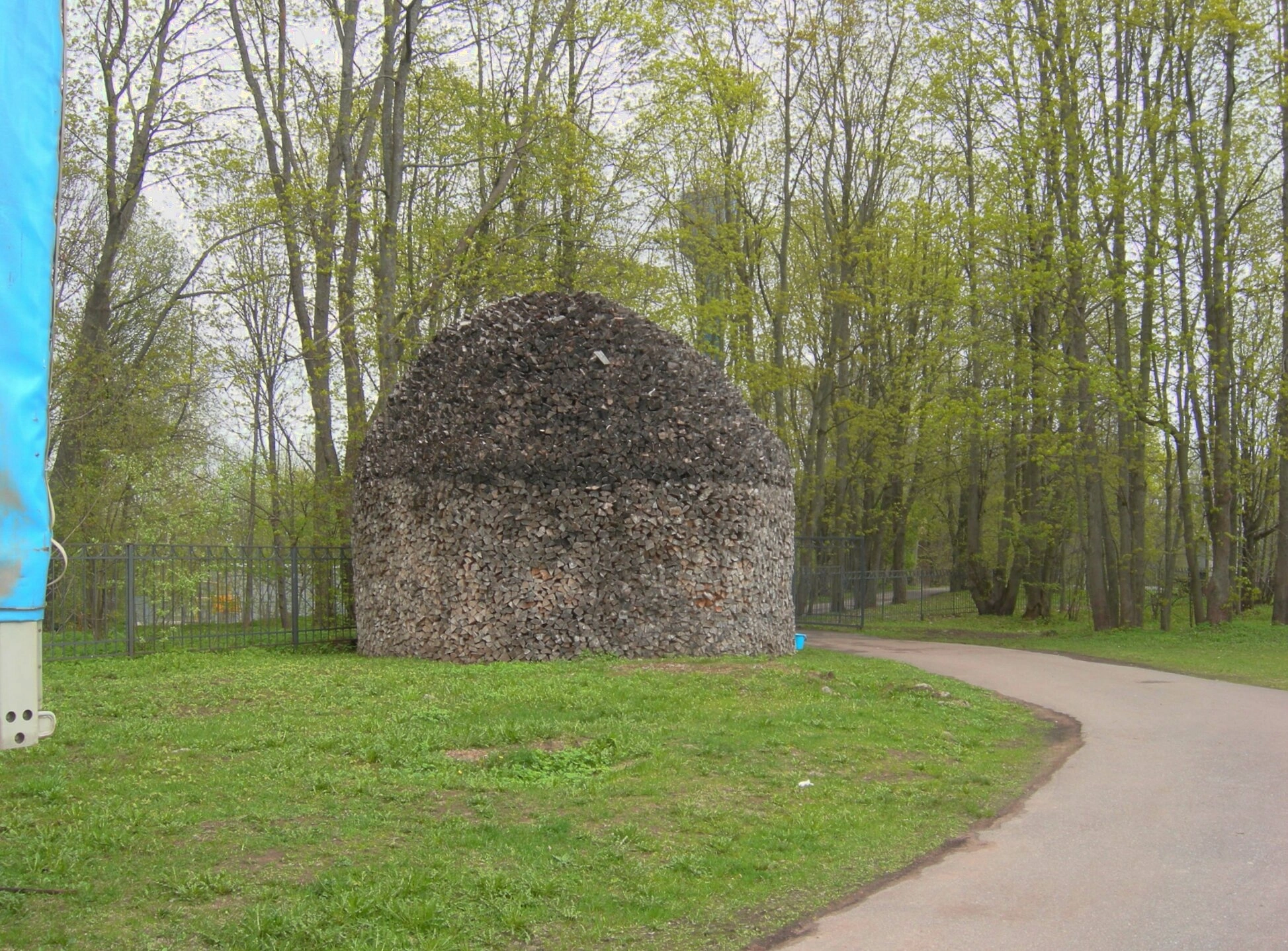 Сложенная с большим мастерством поленница находится на ухоженной зелёной лужайке рядом с асфальтированной дорожкой, ведущей к святым вратам монастыря. Её куполообразная форма не только функциональна, но и символична, напоминая о небесном покровительстве и стремлении к горнему. Вокруг простирается мирный монастырский пейзаж: вековые деревья, ухоженные территории и величественные храмы обители, основанной ещё в XII веке преподобным Варлаамом Хутынским.