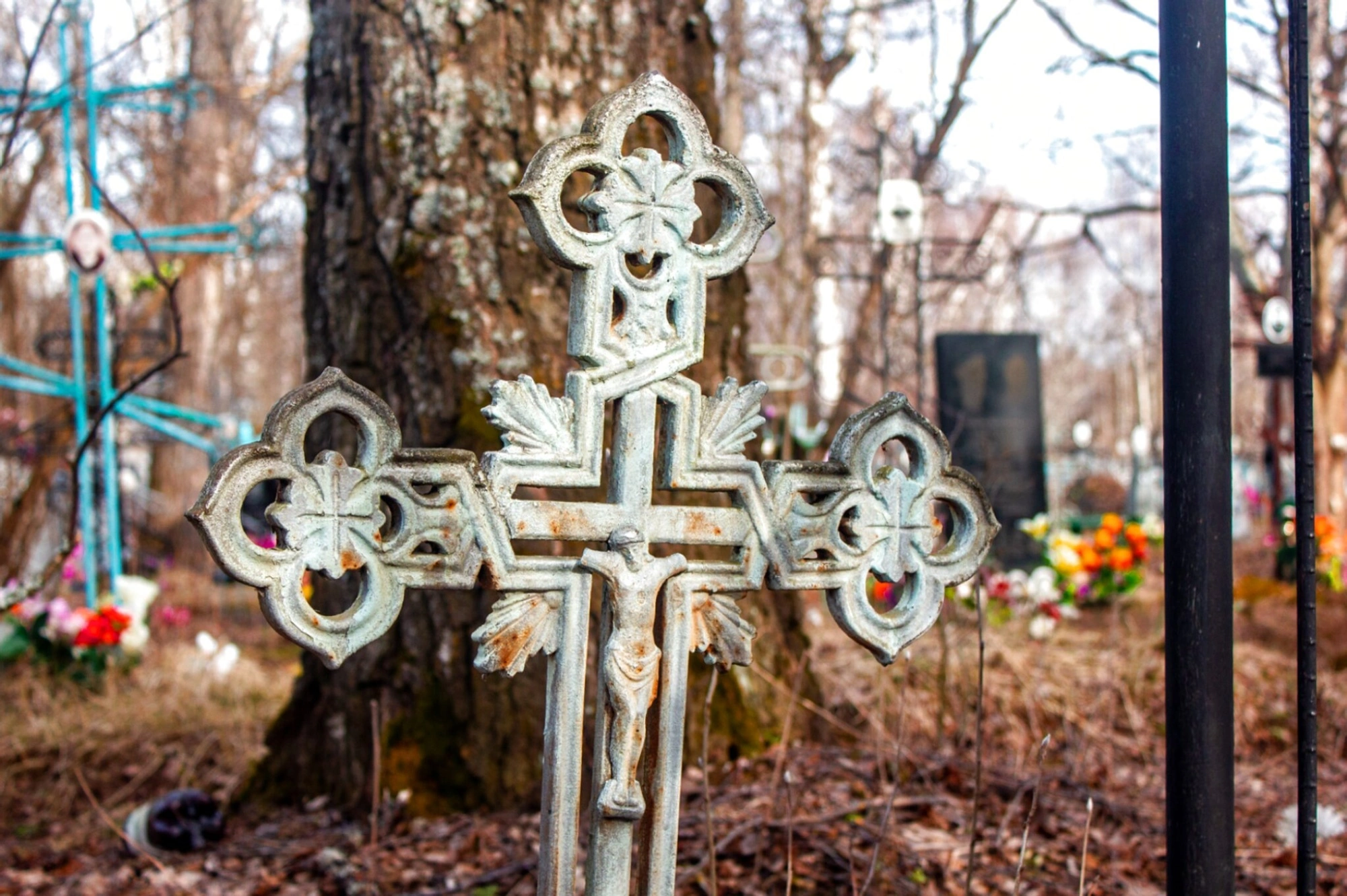Православный крест на кладбище Спасо-Преображенской церкви в Сухаренках