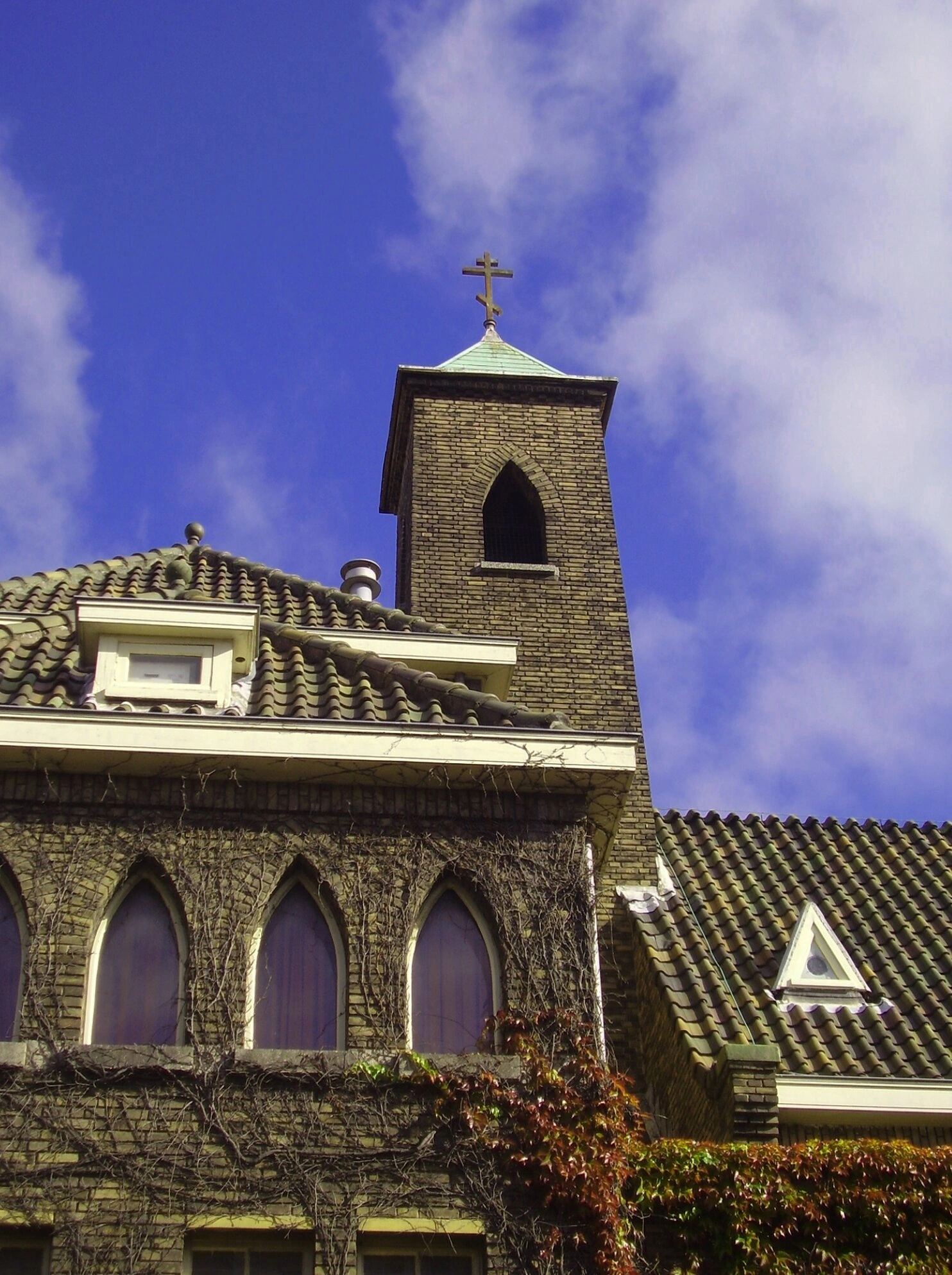 На фотографии запечатлён храм православного мужского монастыря в честь Святого Иоанна Предтечи, расположенного в нидерландском городе Гаага. Данная обитель является важным духовным центром Русской Православной Церкви Заграницей в Нидерландах.
