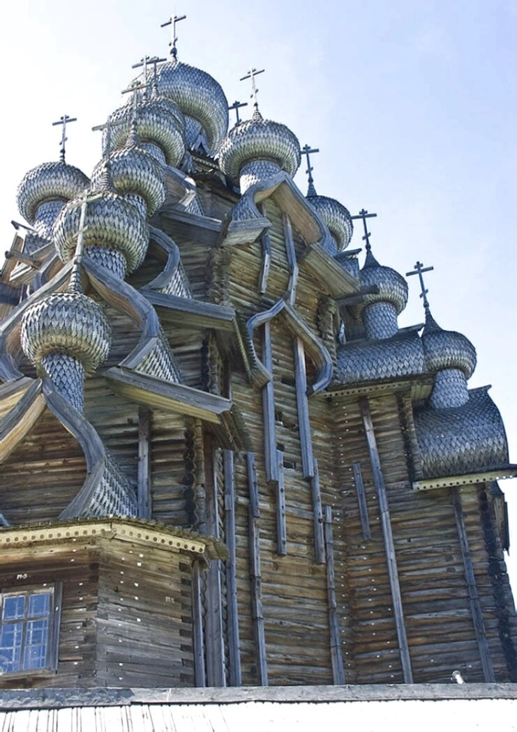 Этот храм-исполин высотой в 37 метров не только архитектурный памятник, но и действующий православный приход, место молитвенного предстояния. Его образ стал олицетворением духовной силы, смирения и гармонии человека с творением Божиим. Фотография позволяет оценить монументальность и вместе с тем лёгкость этого дива деревянного зодчества, признанного частью всемирного культурного наследия человечества.
