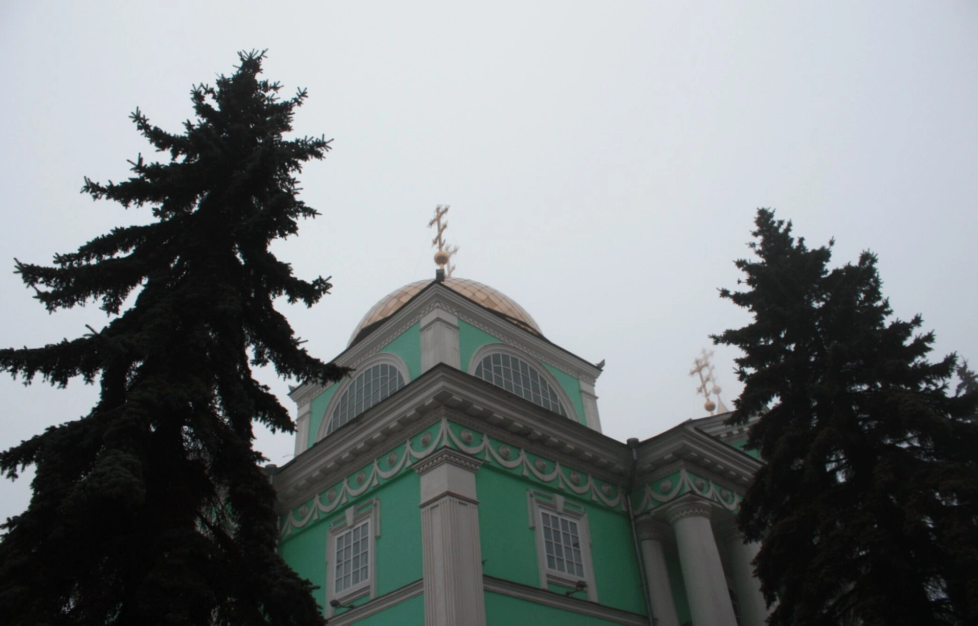 На представленной фотографии запечатлён величественный Преображенский кафедральный собор, являющийся главным православным храмом Белгорода и одной из ключевых святынь Белгородской и Старооскольской епархии. Снимок передаёт благоговейную атмосферу, окружающую это место, подчёркнутую пасмурным небом, которое создаёт мягкое, приглушённое освещение, напоминающее о бренности земного и величии небесного.