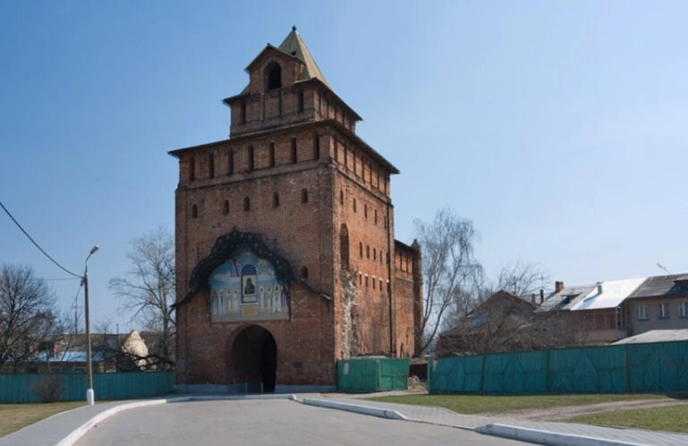 На представленной фотографии запечатлены исторические Пятницкие ворота Коломенского кремля, являющиеся главной проездной башней древней крепости. Это сооружение XVI века сохранило сво величие и духовную значимость через столетия.