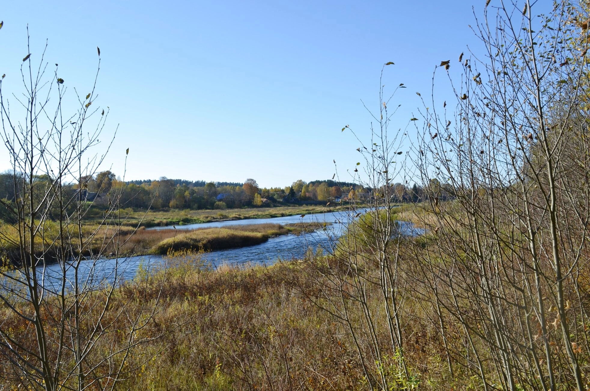 На представленной фотографии запечатлен живописный природный ландшафт в окрестностях села Семеновское, что на южной окраине древнего града Торжка. Изображение показывает изгиб реки Тверца – одной из значительных водных артерий Тверской земли, несущей свои чистые воды через поля и луга.
