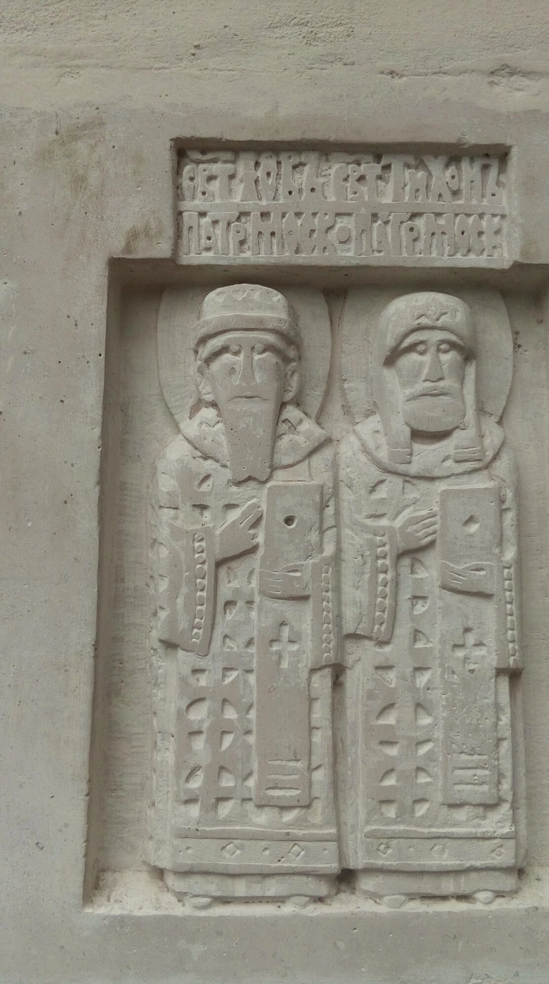 Рельеф святых Петра и Февронии Муромских на церкви Малое Вознесение