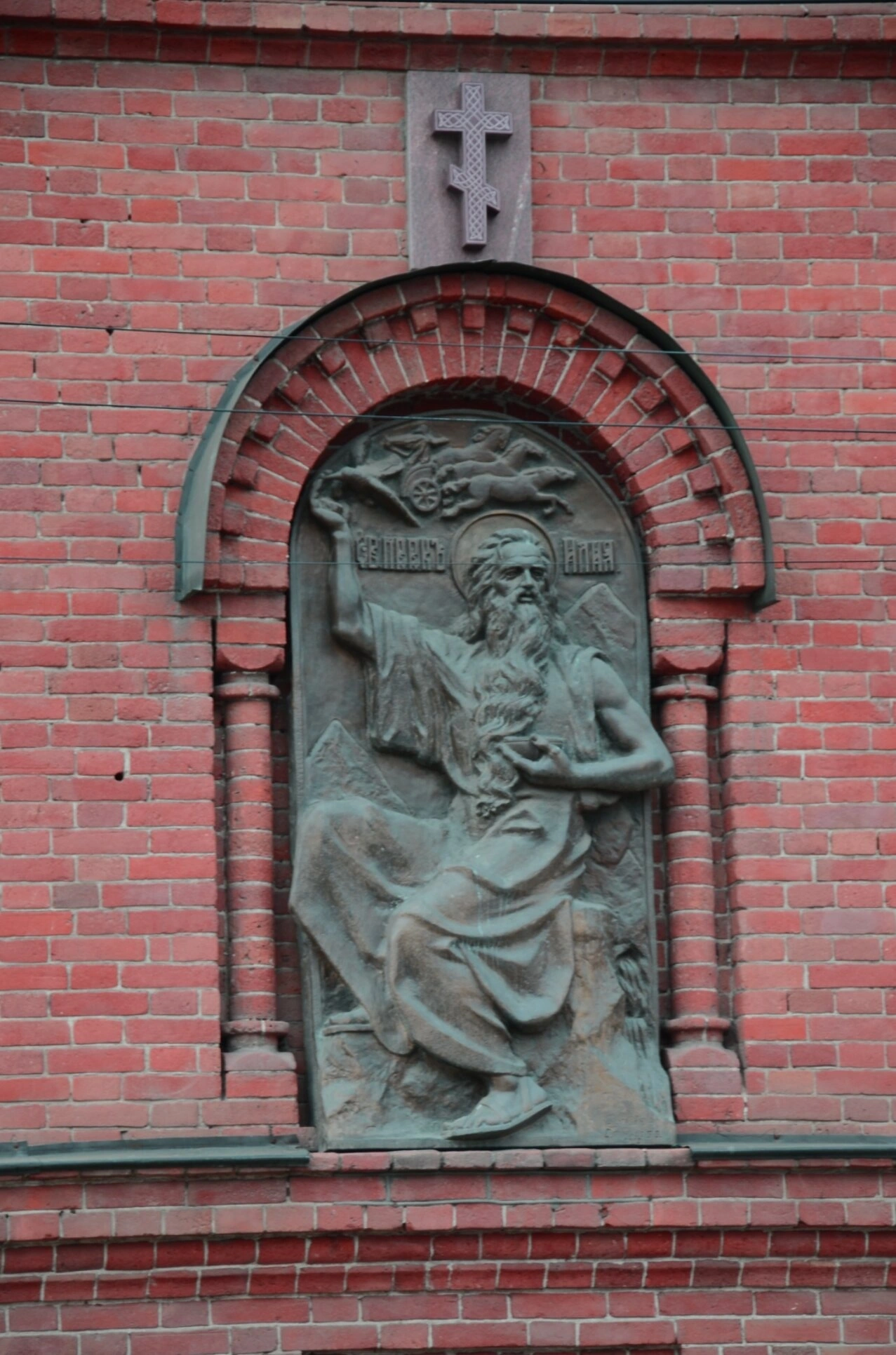 Рельефный образ святого на Ильинском храме в Краснодаре