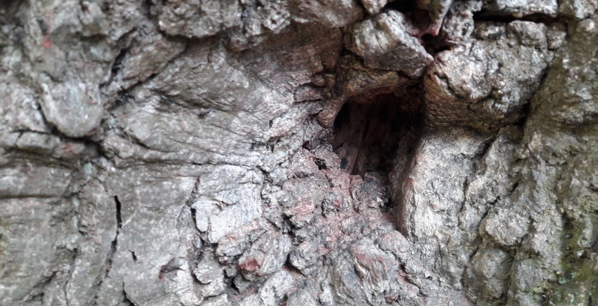В центральной части композиции внимательный наблюдатель может различить естественное дупло, ведущее во внутреннее пространство ствола. Подобные образования являются неотъемлемой частью жизненного цикла старовозрастных деревьев и служат убежищем для многочисленных представителей лесной фауны.
