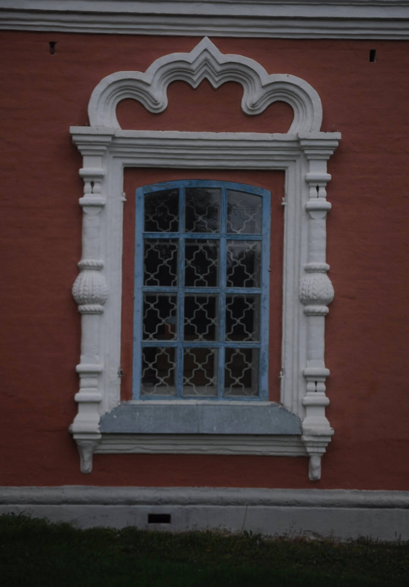 Ярко-красный цвет стены, на фоне которой выделяется окно, является традиционным для русской храмовой архитектуры и символизирует торжественность и красоту дома Божия. Вся композиция в целом создаёт ощущение благолепия и гармонии, присущее православным святыням. Этот архитектурный элемент является не только украшением фасада, но и немым свидетельством богатой духовной истории данного места, привлекая внимание паломников и ценителей церковного искусства.
