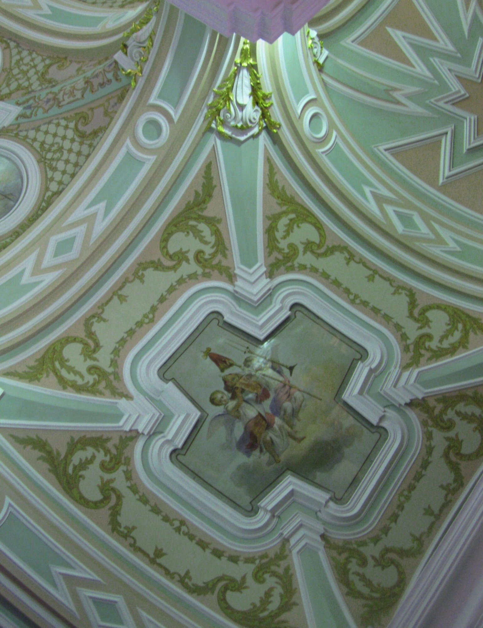 Своды обильно украшены лепным позолоченным орнаментом, состоящим из сложных переплетений акантовых листьев, картушей и гирлянд. Этот пышный декодор не только выполняет эстетическую функцию, но и несёт глубокую символику, прославляя Творца через красоту тварного мира. Каждый элемент отделки, от малейшей детали лепнины до обширных плоскостей фресок, свидетельствует о высочайшем мастерстве исполнителей и о особом статусе собора как главного храма Российской империи.