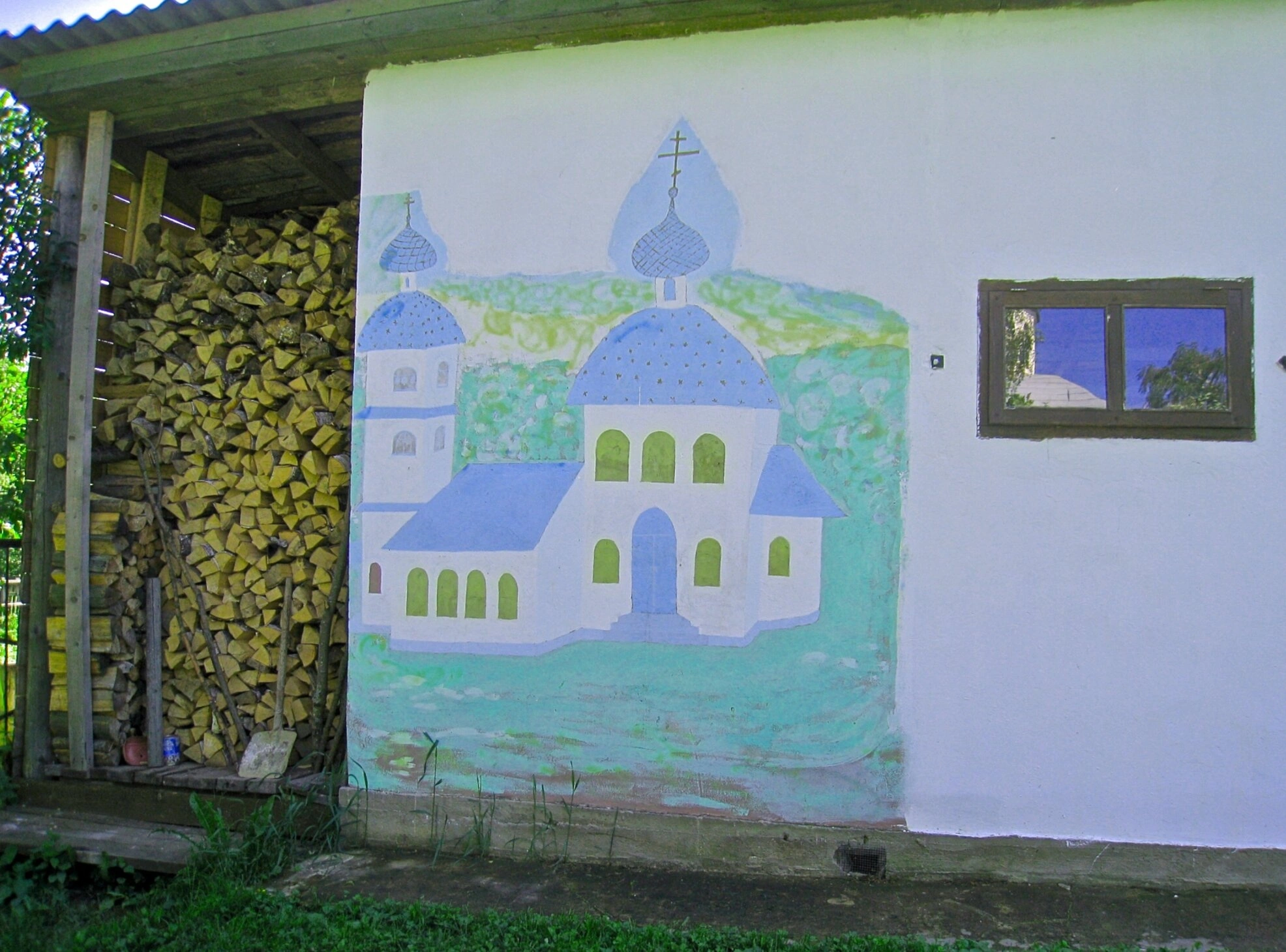 - Роспись Вознесенской церкви в Борщево на стене дровяного сарая