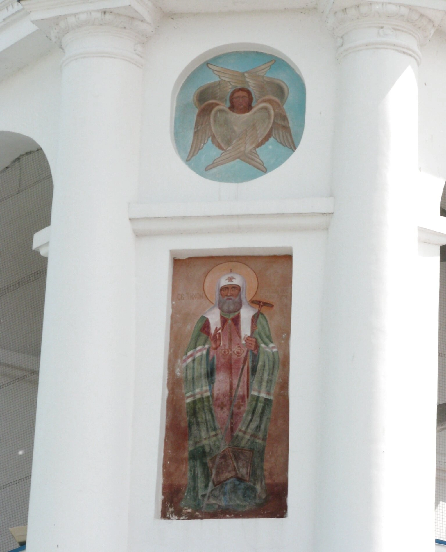 Данные росписи, украшающие внешний фасад собора, выполнены в канонической традиции православной иконописи и служат не только украшением, но и проповедью в красках, рассказывая верующим о небесной реальности и святых заступниках. Покровский собор, история которого насчитывает несколько столетий, является одним из духовных центров Воронежа, а его архитектурный облик и настенная живопись представляют большую культурную и историческую ценность.