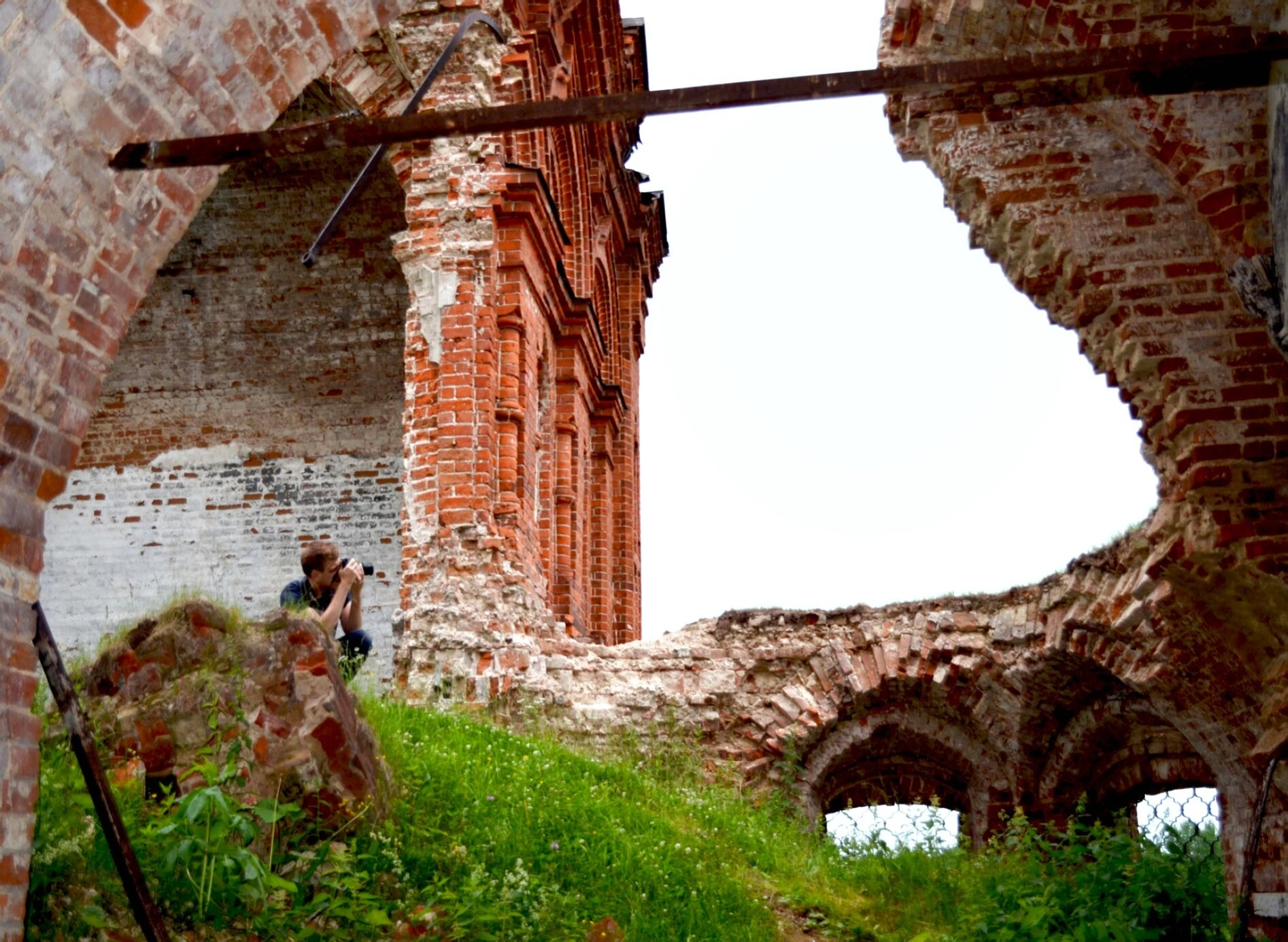 На фотографии слева заметна фигура человека, предположительно фотографа, что позволяет оценить масштаб сооружения. Несмотря на разрушительное действие времени и исторических перипетий, даже в руинах храм сохраняет своё духовное значение и представляет несомненный интерес для историков, архитекторов и паломников. Благовещенская церковь в Покче remains памятником федерального значения и находится под охраной государства как объект культурного наследия.
